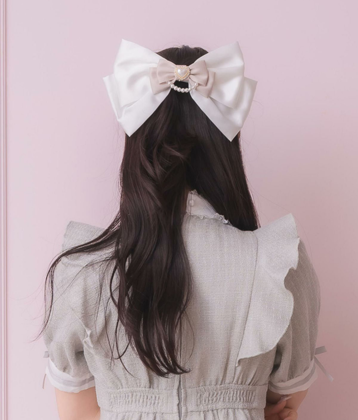 ガーリーな雰囲気で仕上げた大きなリボンバレッタ。大小のダブルに重なったリボンでとことん女の子を演出しつつも、同色の統一感でスタイリングしやすいアイテムです♪艷やかなパールをあしらうことで高見えを叶えてくれます。