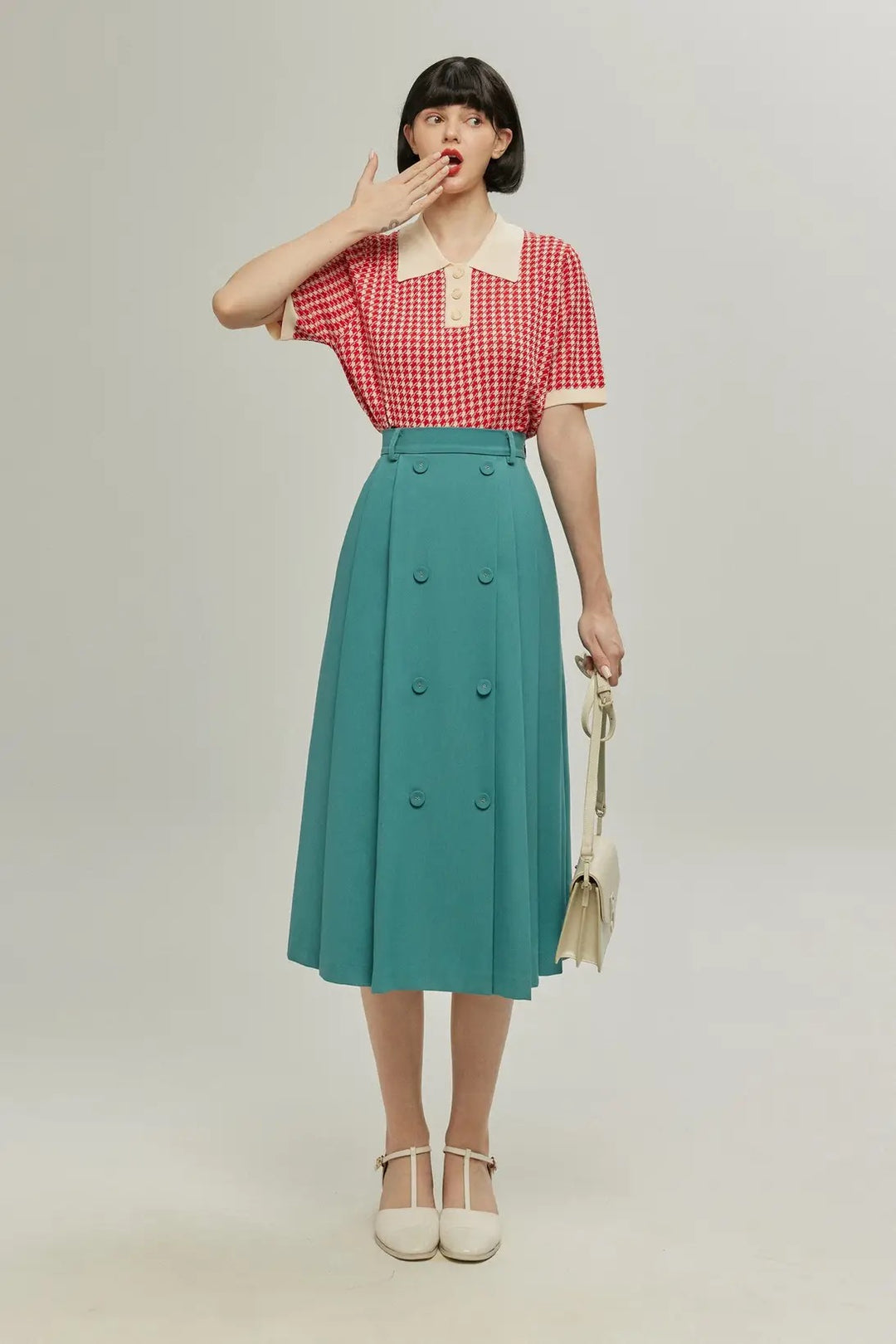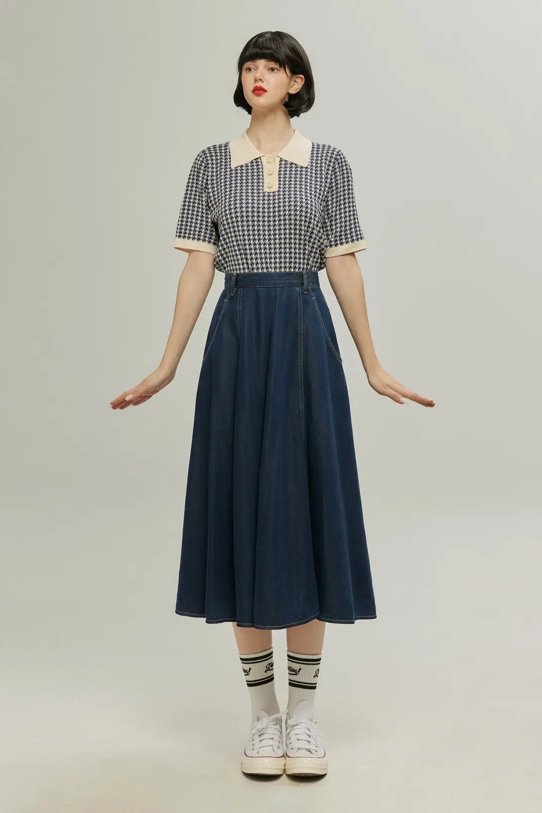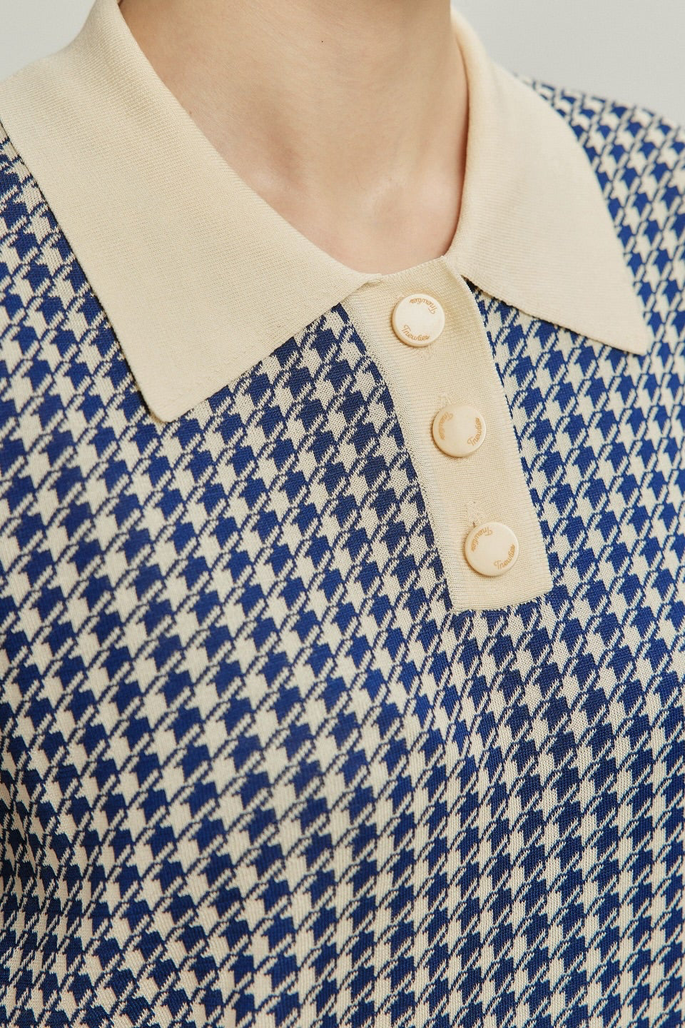 新作商品のご紹介です👒 《今日は休日じゃないの?》Navy/Red 千鳥柄のサマーニットです🎶 これ一枚で一気にレトロ感が楽しめます😺🌟