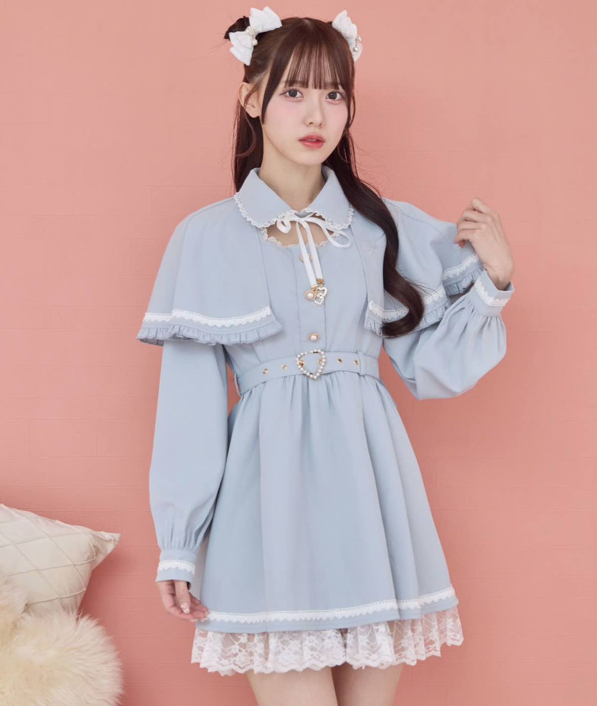 裾レースケープワンピ...