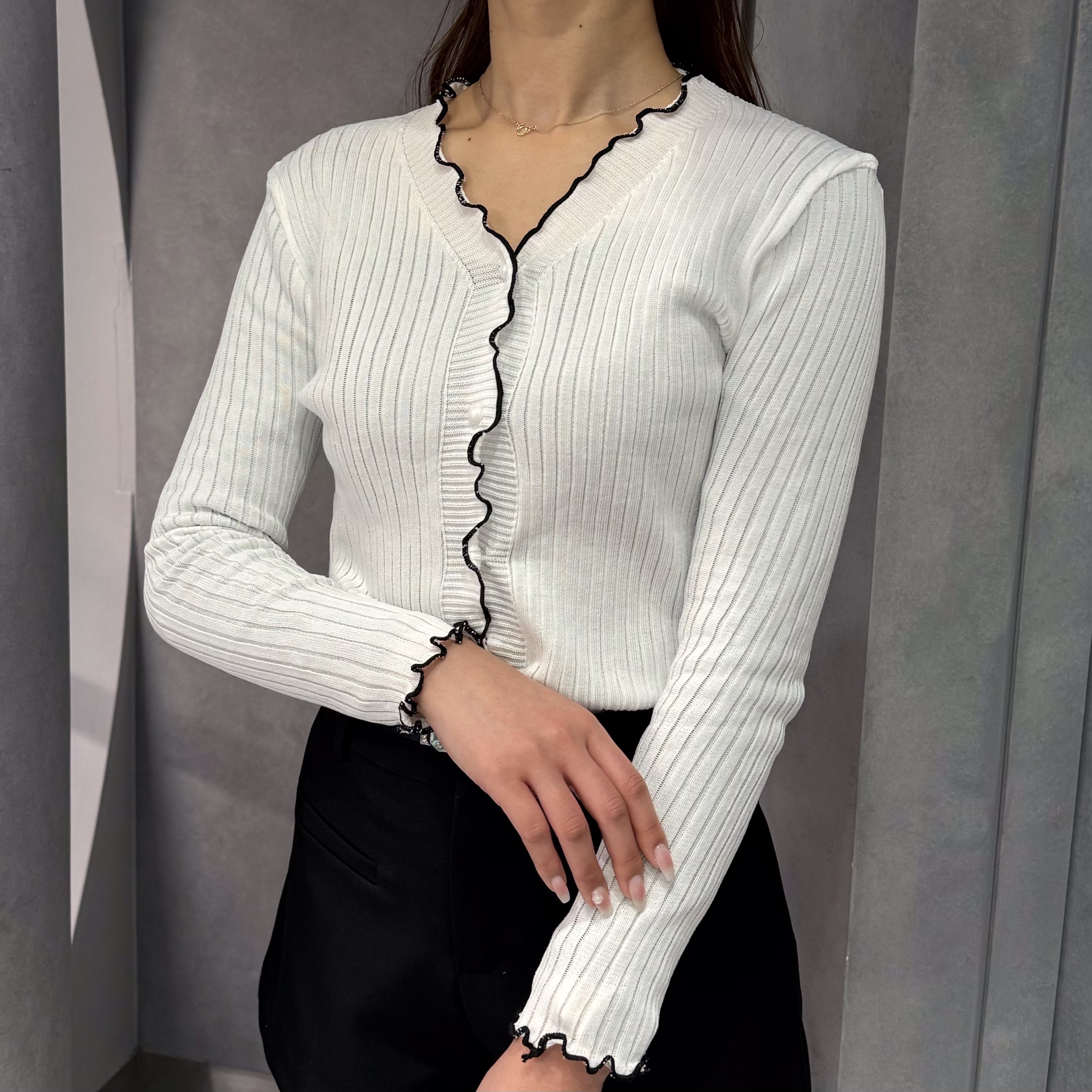 袖メロウVネックリブ...