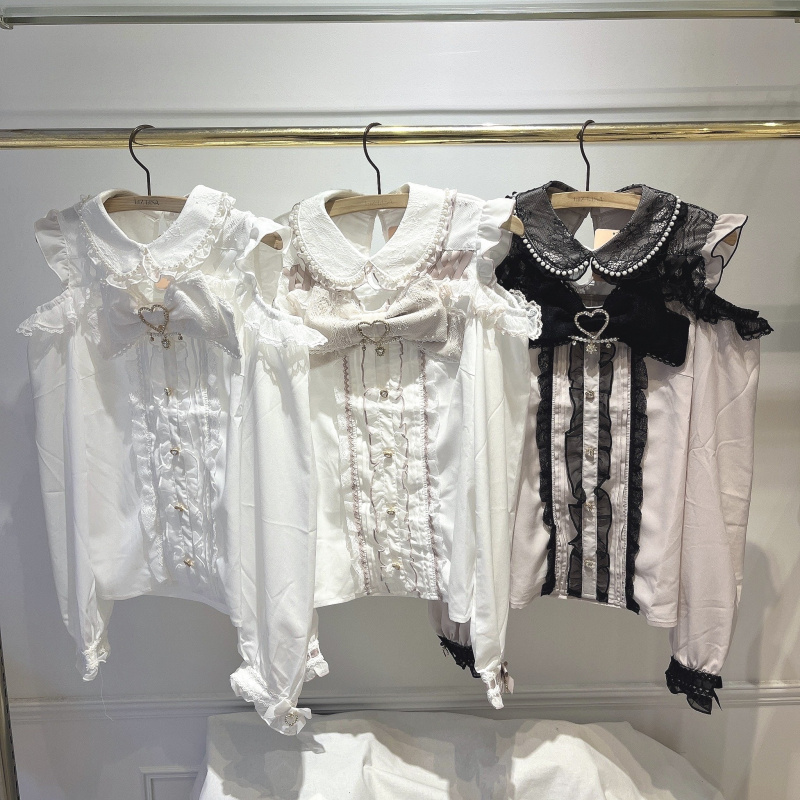 ヨークのレースアップ風デザインやふんわりしたバルーンスリーブで