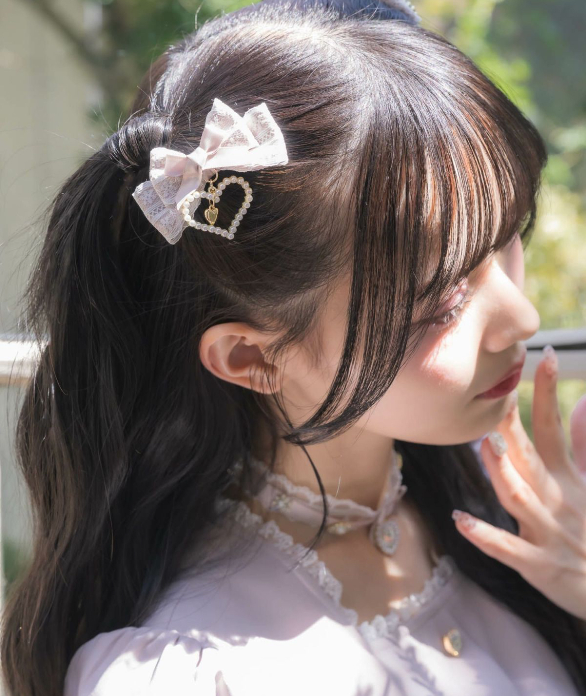 ダブルリボンとダブルハートでガーリー度MAXなヘアクリップ♡配色レースが甘めな雰囲気を醸し出し、レディライクなハートが乙女心を擽ります。甘めにも辛めにも活躍する、ブラックとピンクの2色展開です。