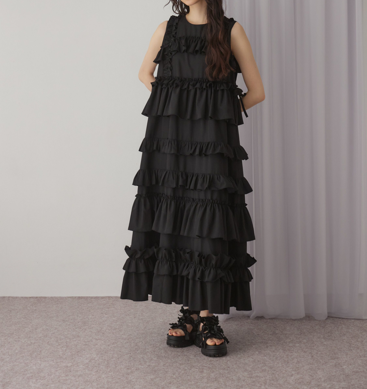 ケーキのデコレーションのように散りばめられたフリルで夏の気分が高まるワンピース〇