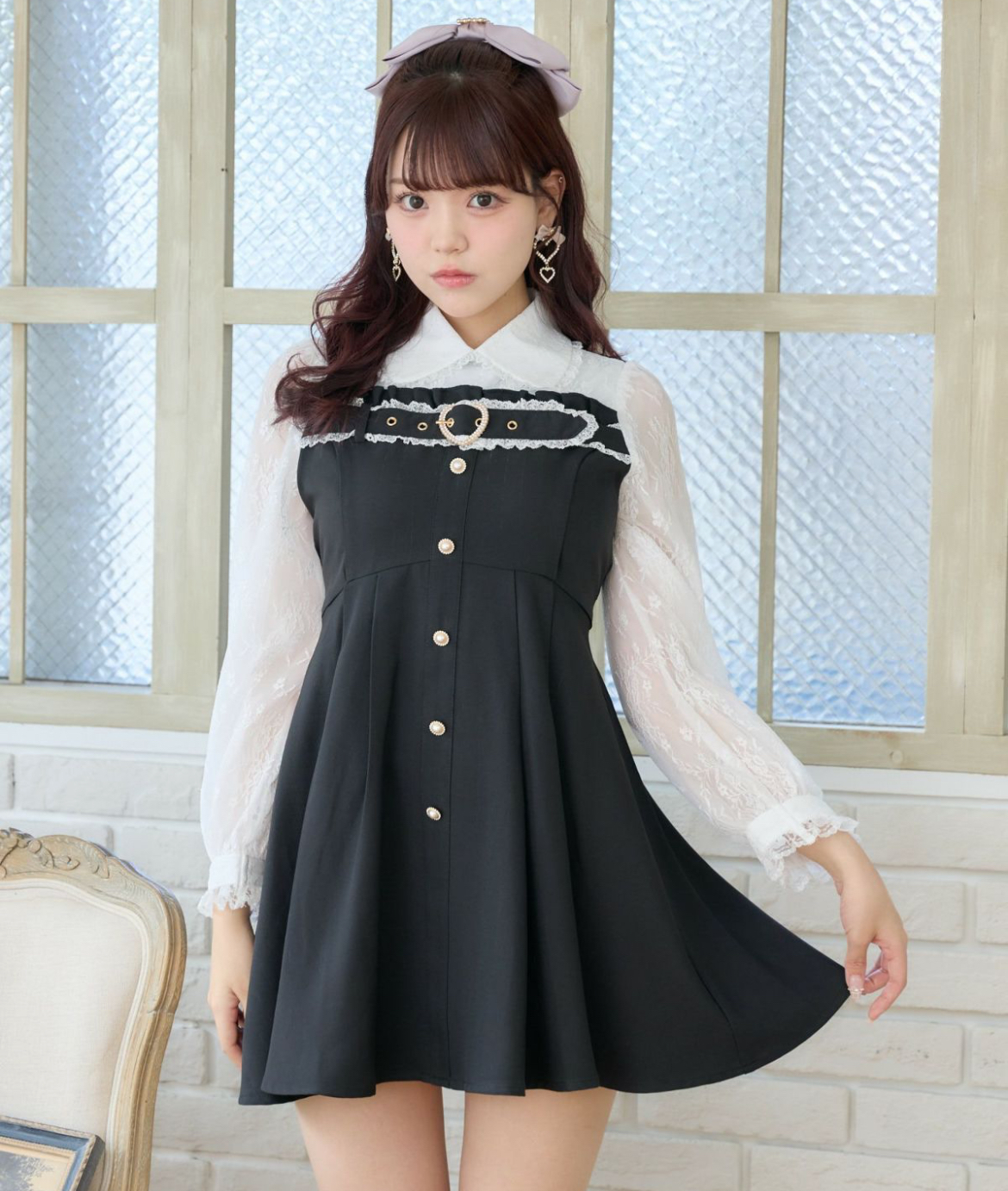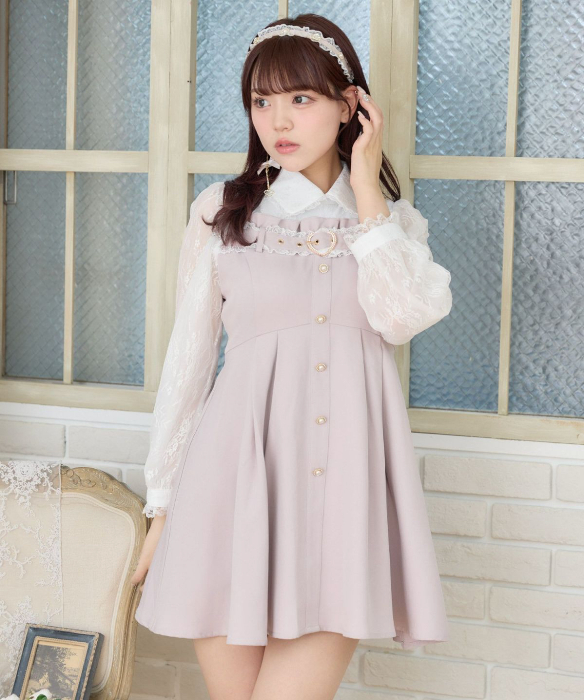 レーストリムされたベルトデザインがアクセントに、清楚な雰囲気を纏うワンピースのお目見えです。上品なレースを使用したブラウスはドッキングされているので、重ね着風も楽に完成♪特別な日にもデイリーにも、バランスの取れたアイテムです◎
