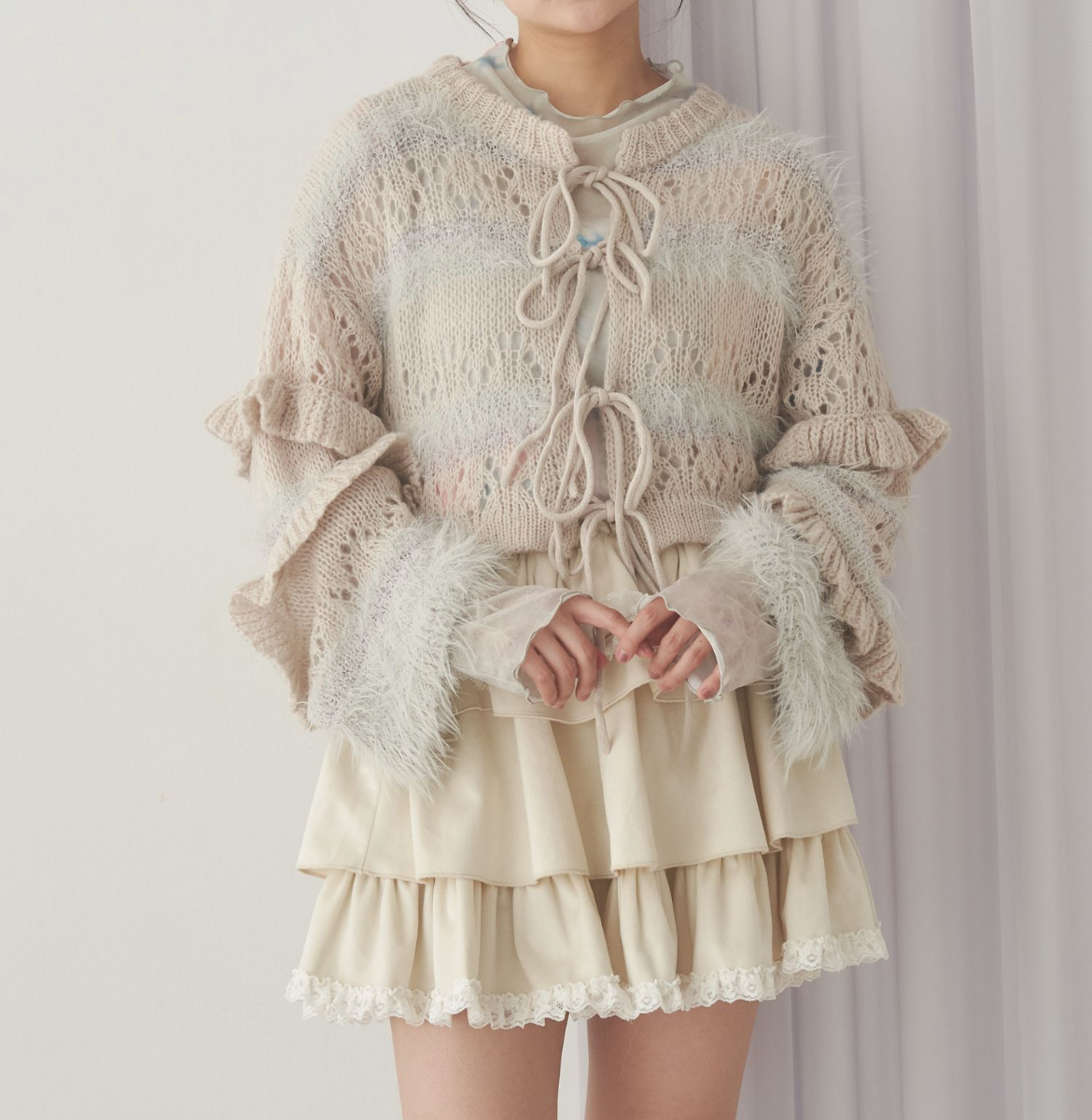 ふわふわの透かし編みボーダーが可愛いニットカーディガン。