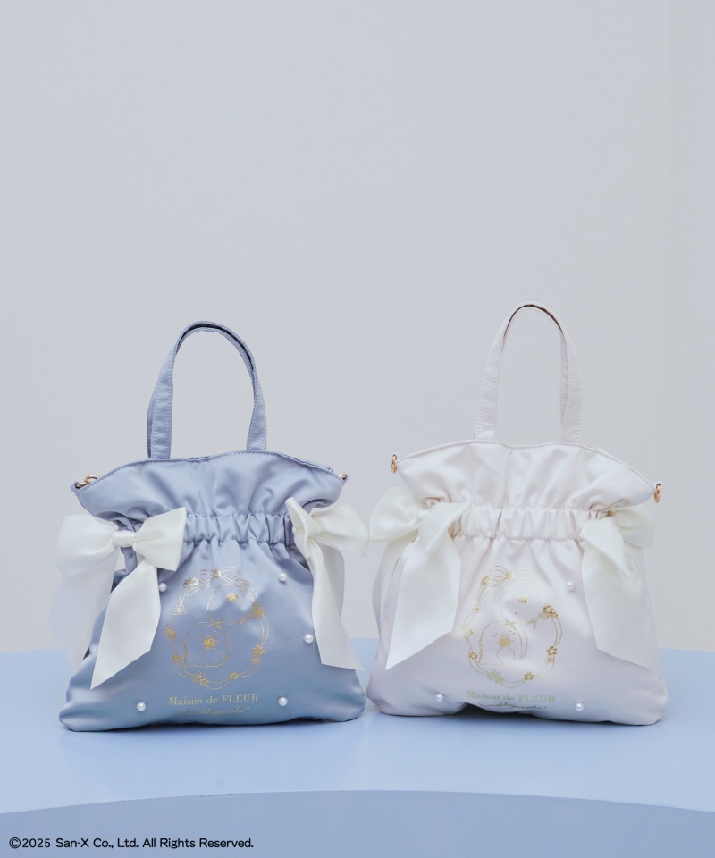 すみっコたちがブルーや花柄のリボンで