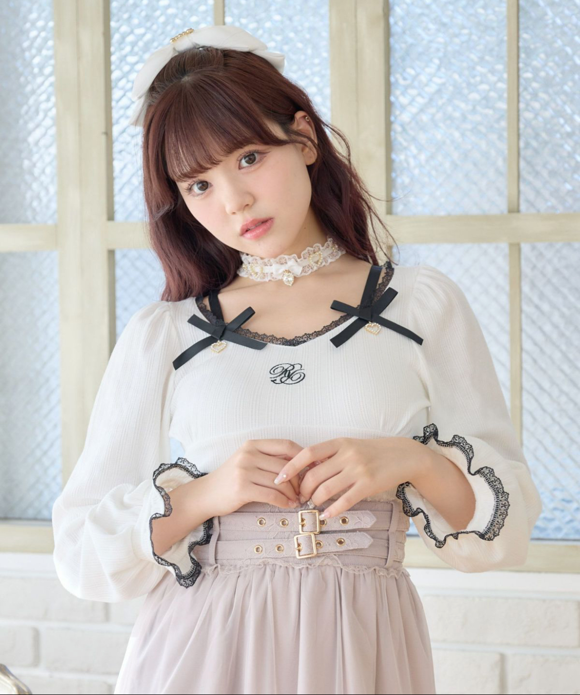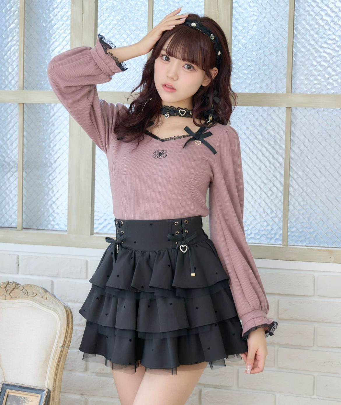 デコルテオープンでほんのりセクシーな大人可愛いを演出♪胸元には小さな黒リボンとハートチャームが施され、甘さとエレガンスを両立◎バイカラーデザインが目を惹き、ピンクは甘さを程よく抑えた絶妙カラーで季節感を匂わせます。
