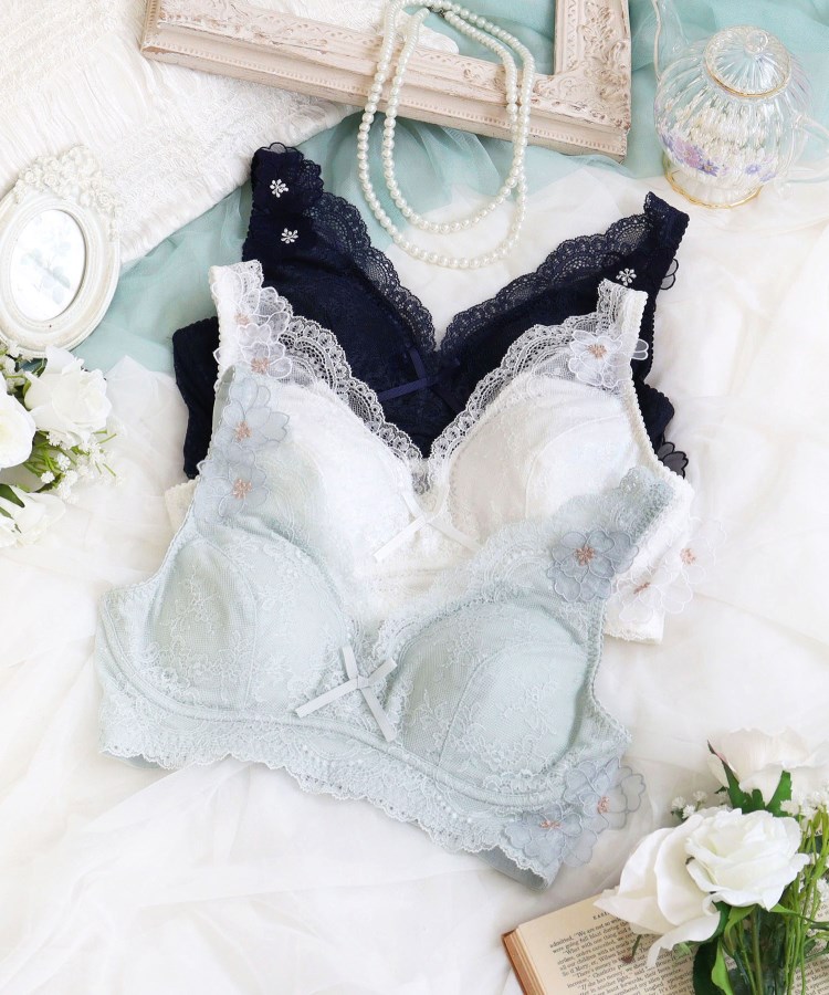 大人気を博した『スティーナ』が、新しいカラーを加えてリバイバル。繊細なチュールへお花のステッチを散りばめたレースの上に、アップリケをふんだんに重ねづけすることにより、透明感の中に立体感を演出したデザインに仕上がりました。花芯にあしらったラメ糸以外をワントーンにすることで、いくつも重なり合った花びらがとても上品でエレガントなイメージを与えてくれます。リボン中央にはパールを添えた、大人の女性へ向けたラグジュアリー感あふれるシリーズです。