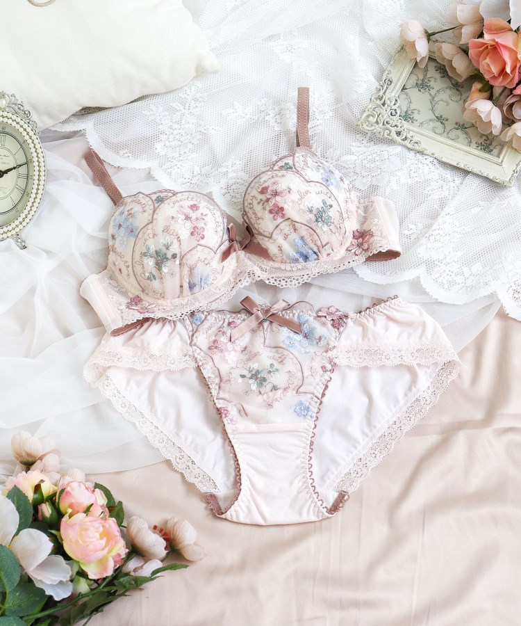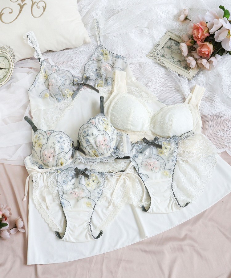 大きなアーチの中に小花や英文字を散りばめた、オリジナリティあふれるシリーズです。リサマリの象徴でもあるお花は、繊細なステッチで3色のグラデーションにすることで、花束のような華やかさを演出。その周りにはアーチに沿うように手描き風の幾何学模様や、Pretty plants、Color with flowerの英文字を入れて、インパクトのあるアーチを素朴で可愛らしい印象に仕上げました。両サイドには小花のアップリケをあしらい、レースの柄行を引き立てています。リサマリの遊び心とメッセージを詰め込んだコレクションをお楽しみください。