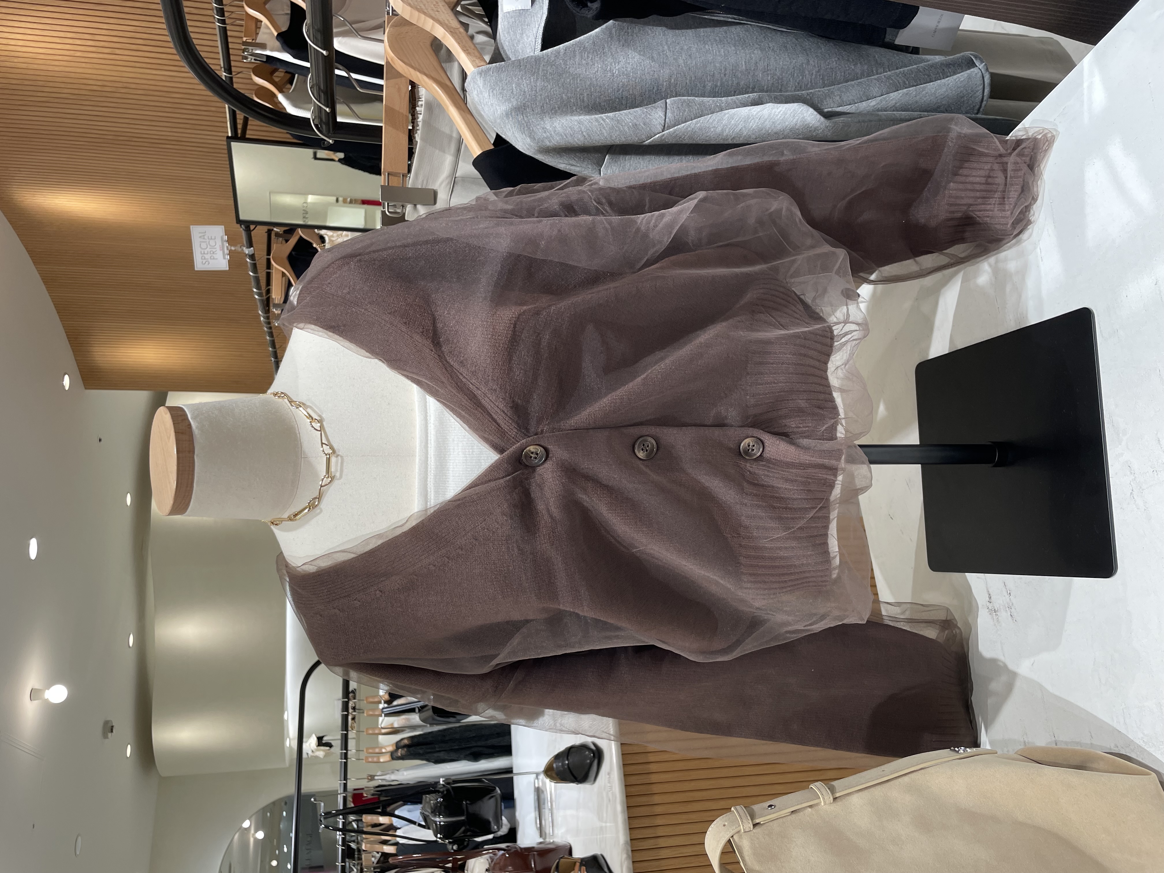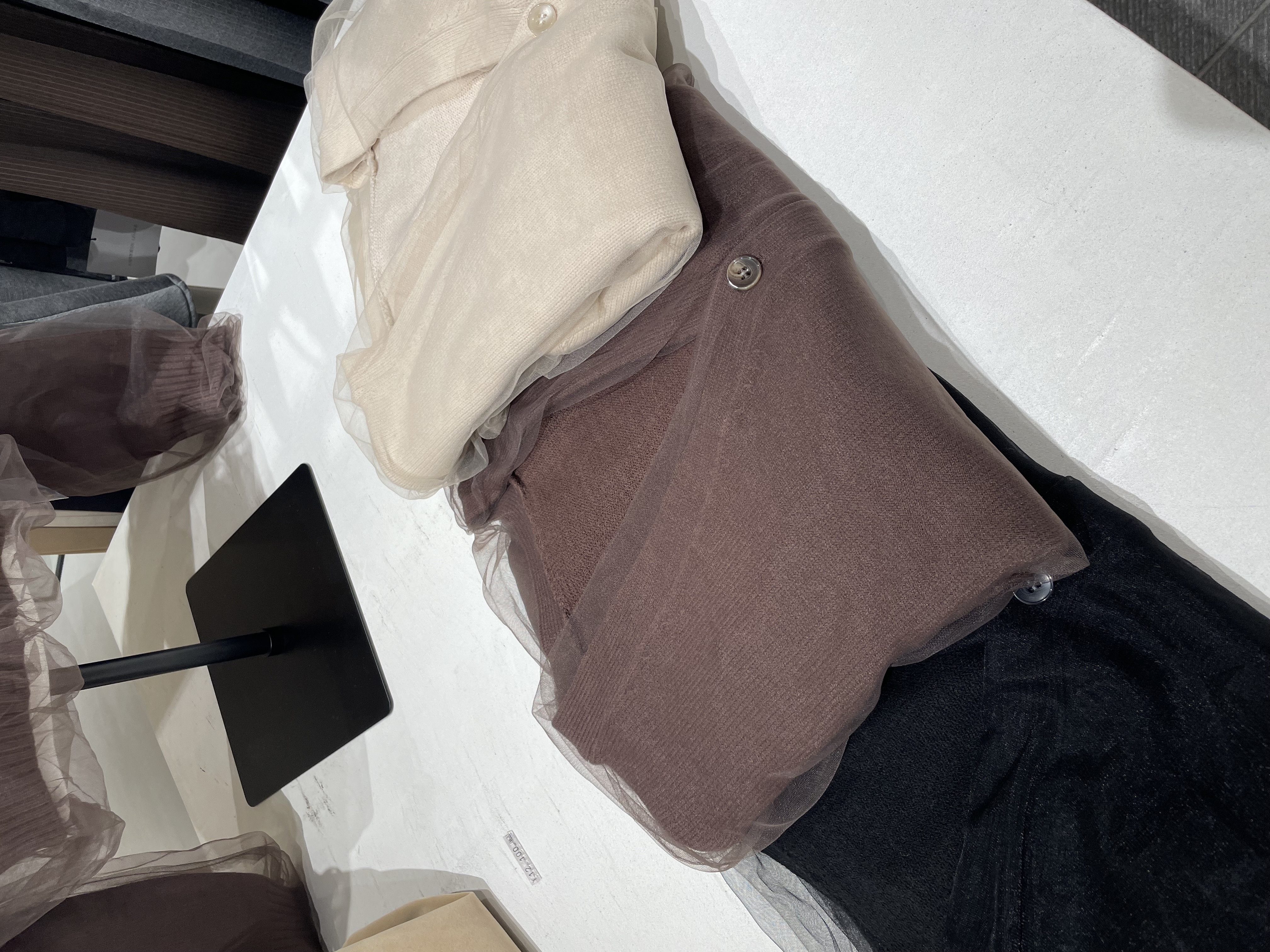 チュールがドッキングされたおしゃれな カーディガンが新作で入荷しました♪ 秋の羽織がわりにぴったりの1枚です♪