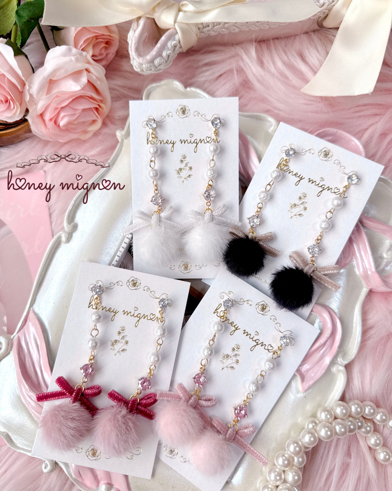 こちらは耳元で揺れるファーがかわいい耳飾り✨