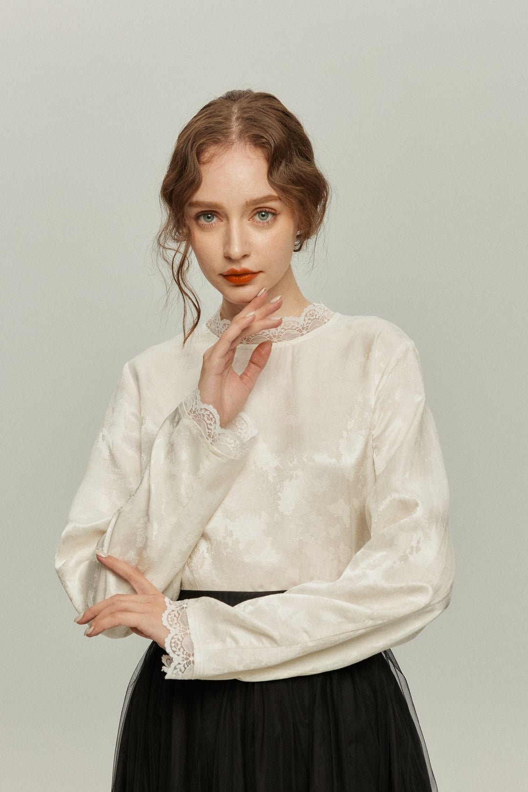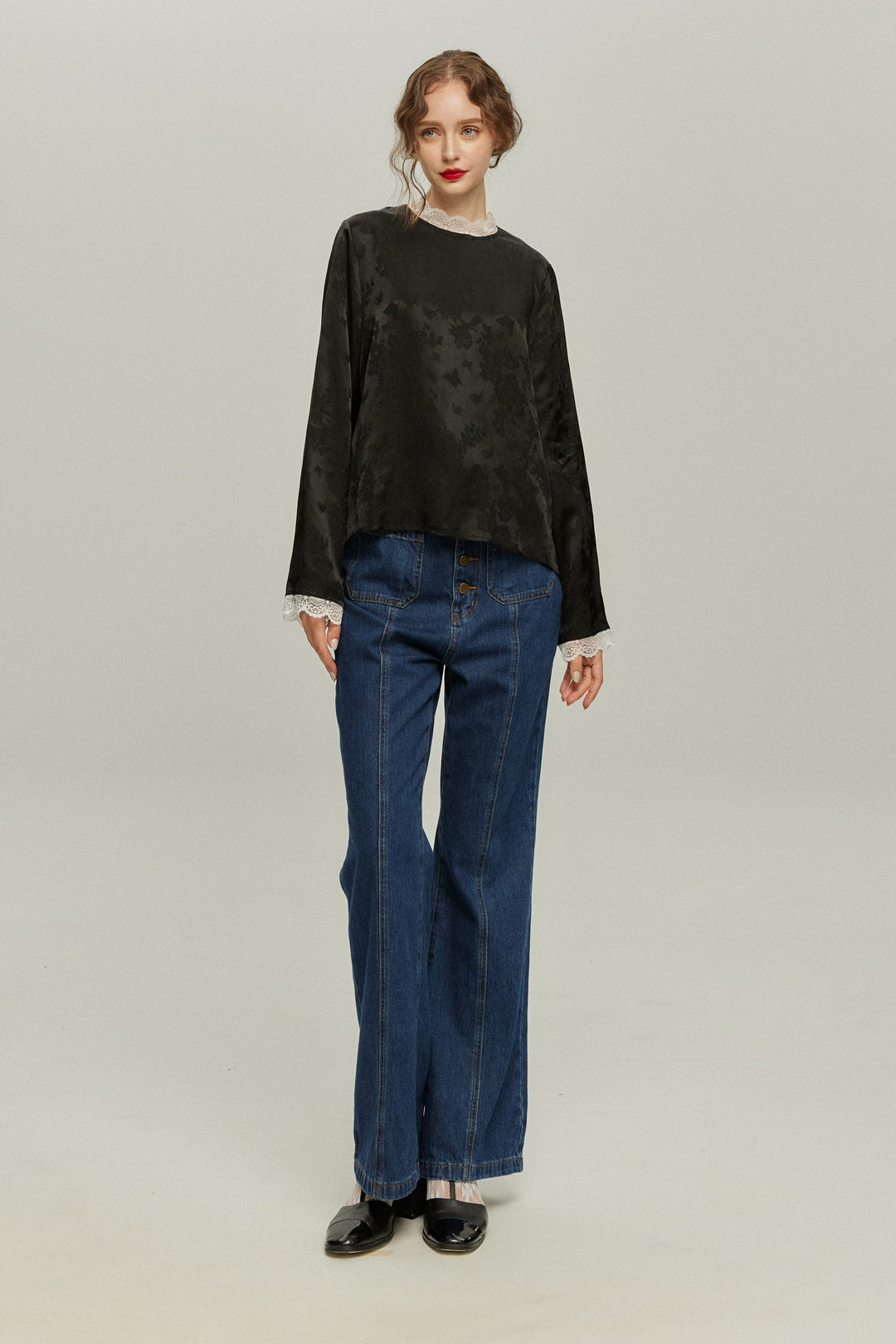 レーストリムが上品さを演出してくれる、重ね着アイテムとしても使いやすい一着です!