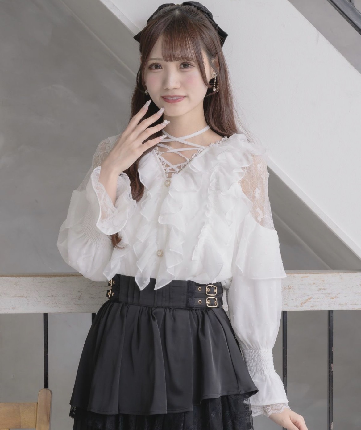 クロスネック×フリルで魅せる万能ガーリーブラウス。ドビードットが視線を惹きつけるさりげないアクセントに♪ホワイトのみ無地もラインナップ、合わせるアイテムを選ばずきちんと感もあるので、デイリー使いからオフィスカジュアルまで幅広く活躍します。クロスネックのリボンは前後自由に結べて、表情の変化も◎
