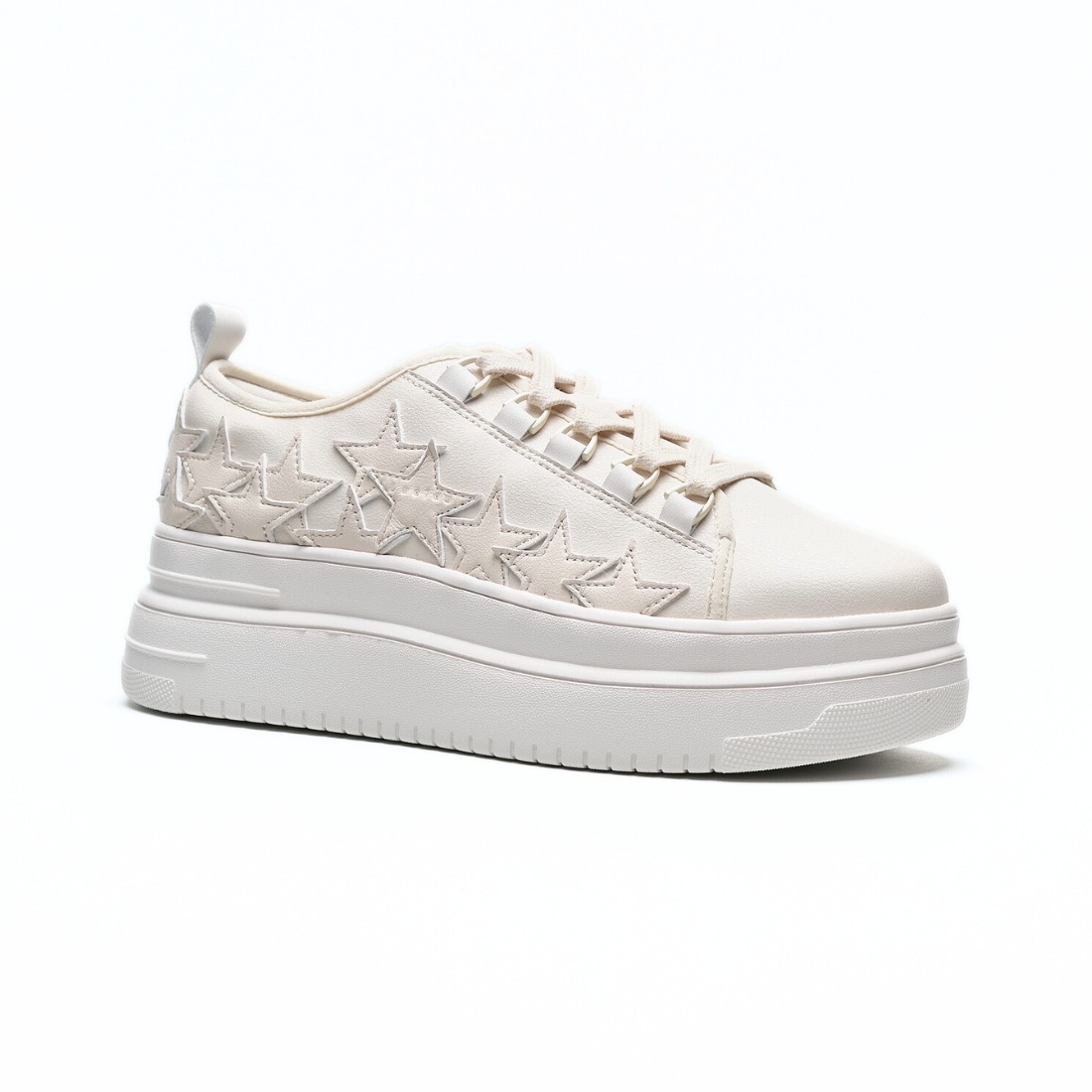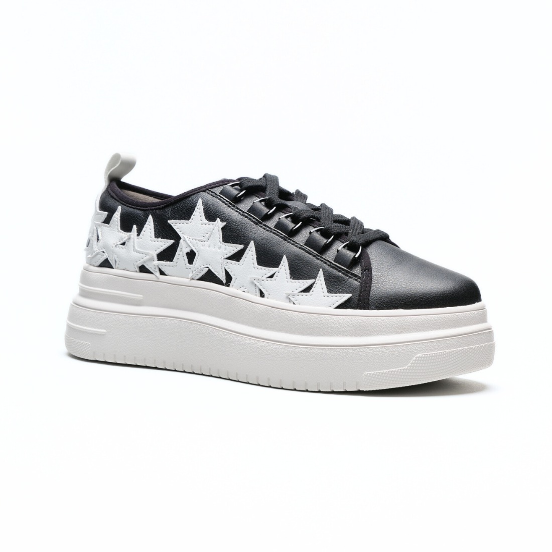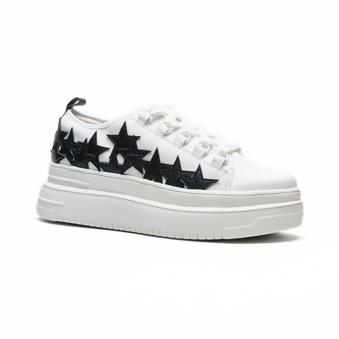大胆なデザインと洗練されたフォルムが融合した、個性派プラットフォームスニーカー。立体的なスターのディテールが目を引くデザインで、足元にインパクトをプラスします。