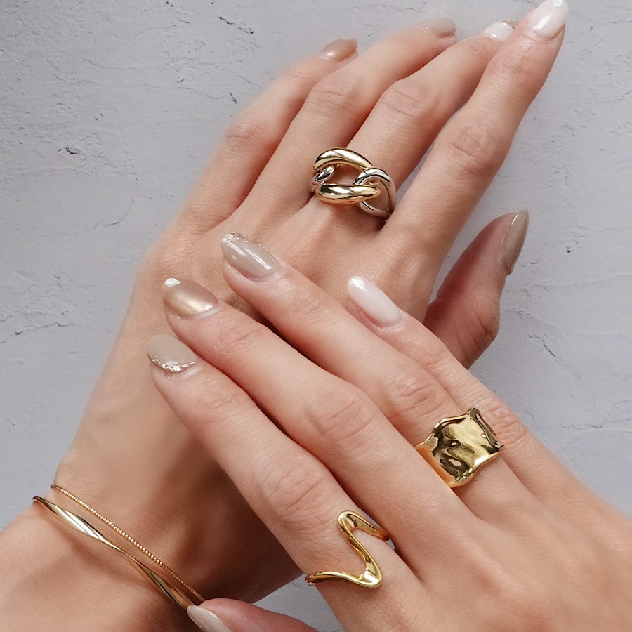 ウェーブラインは陰影があり指先を照らしてくれます🪄 カジュアル使いにハマるデザインです✨ enjoueelは関西唯一の店舗です♪ 是非お立ち寄りくださいませ!♡