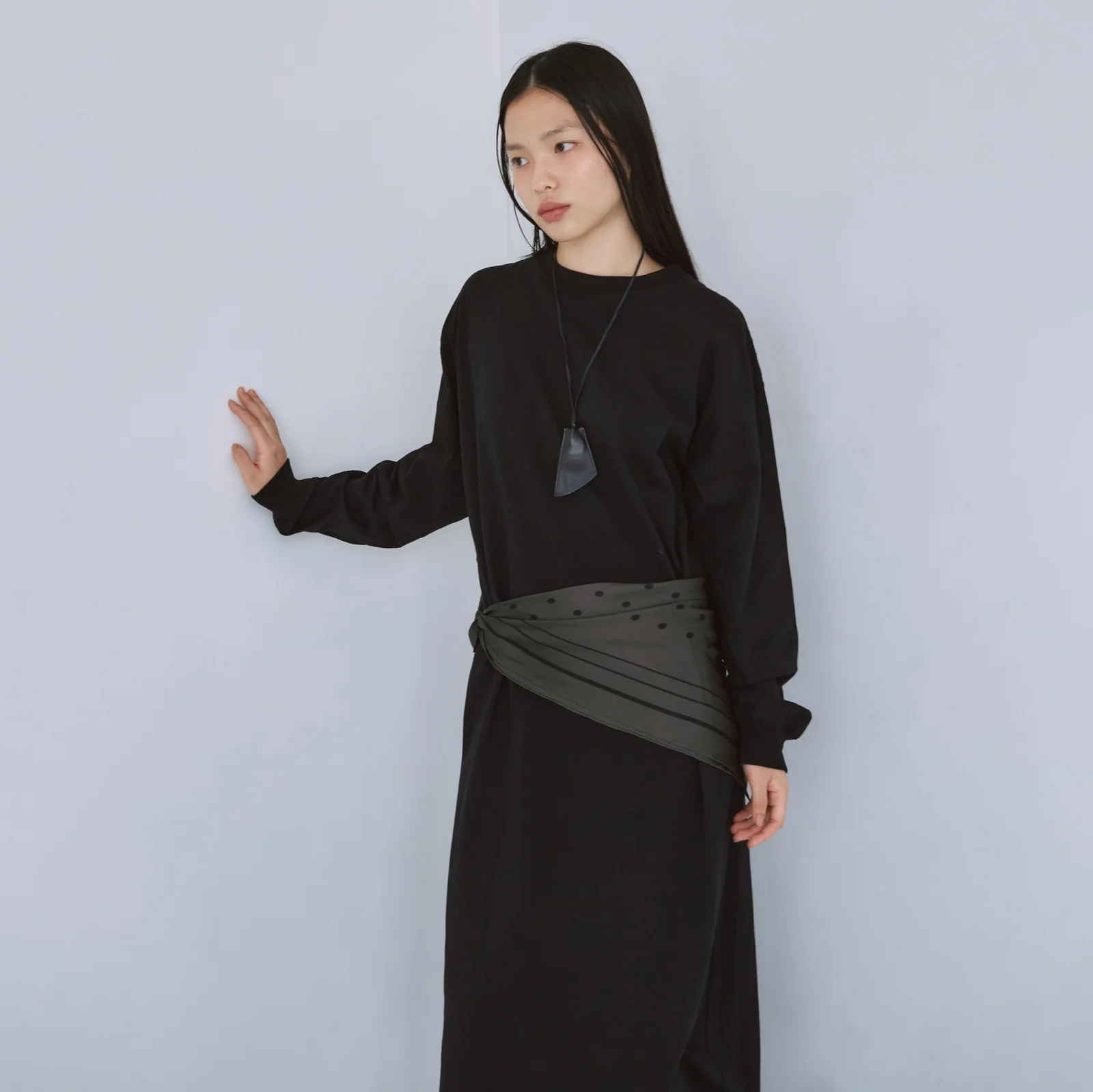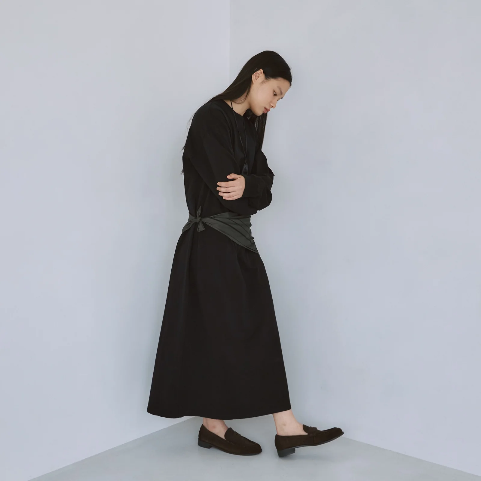 全体的にルーズで、裾にかけて緩やかに広がるシルエット。ドロップショルダー×ボックスシルエットでストレスフリーなリラックスワンピースです。