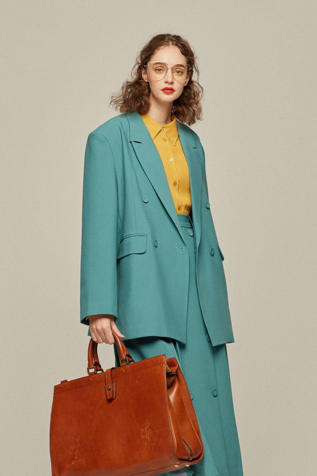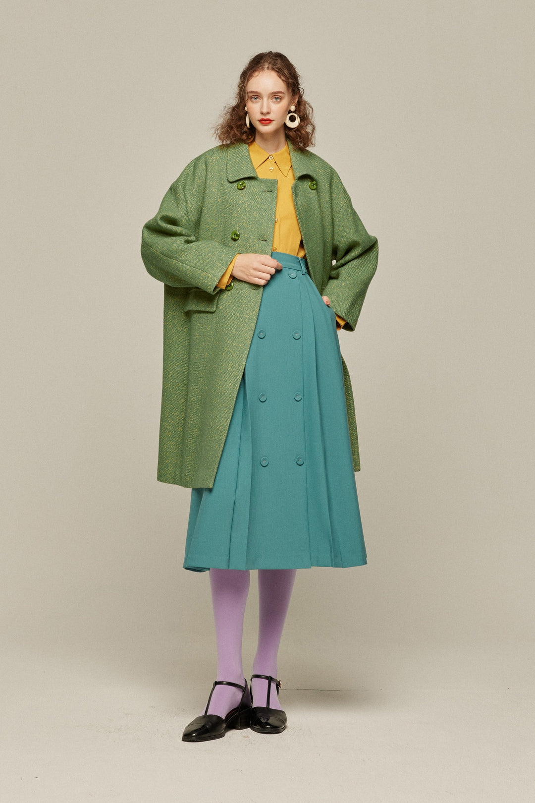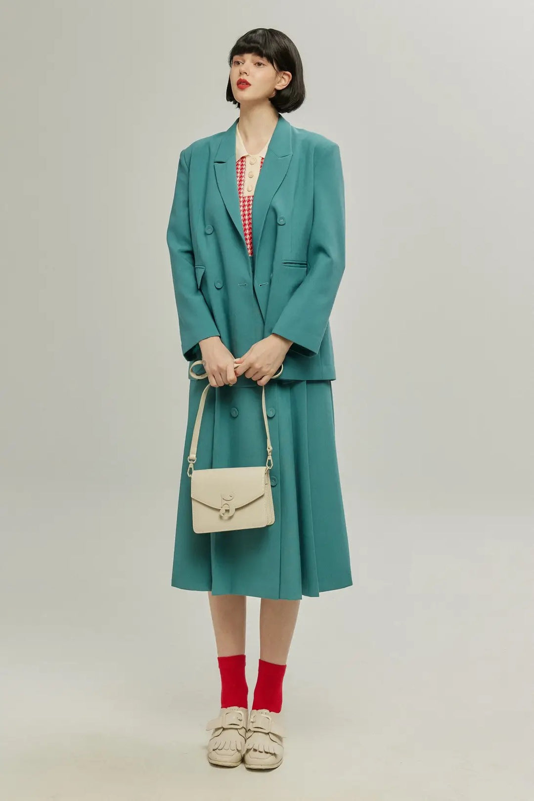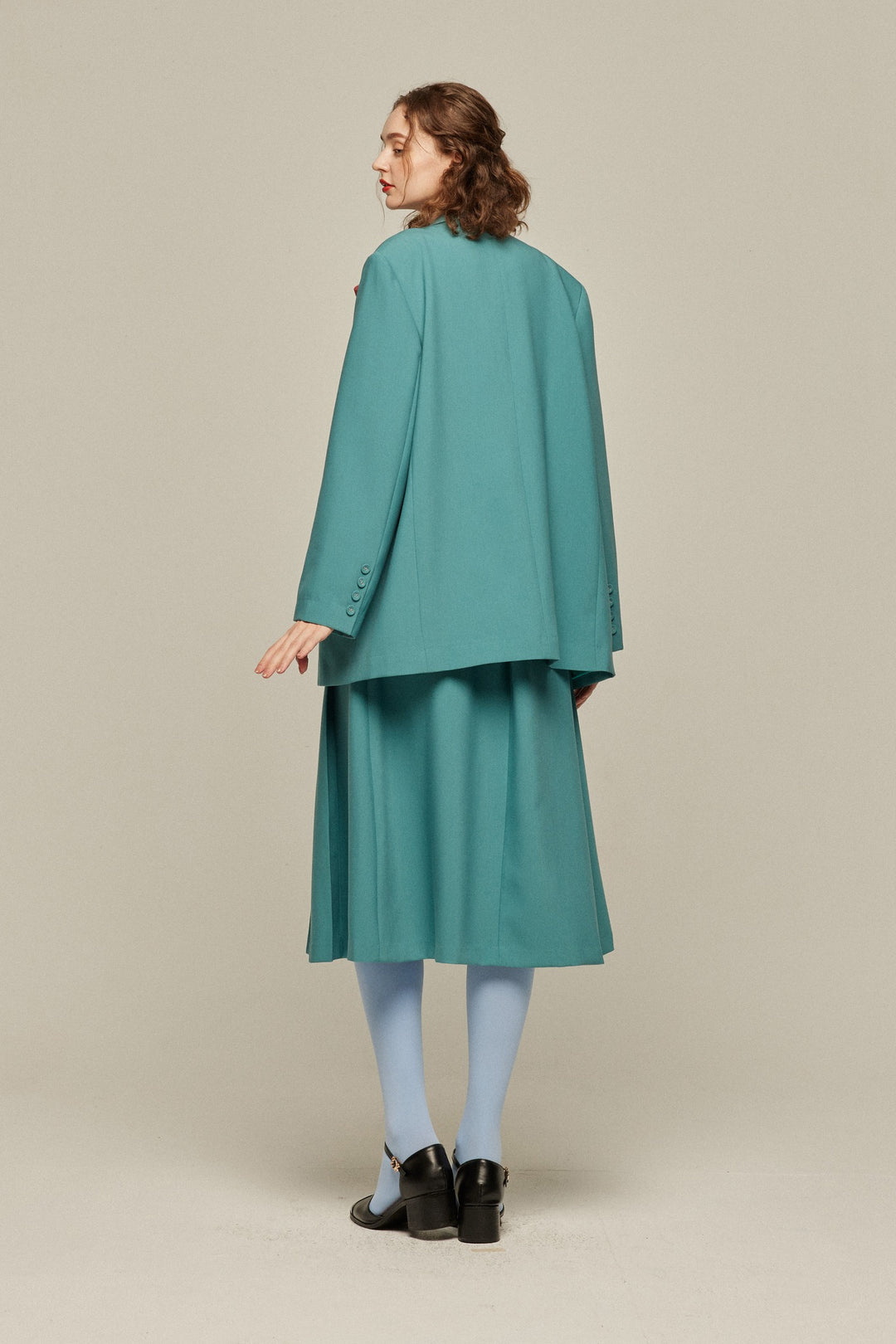 ダブルブレストジャケットとプリーツスカートのセットアップです!