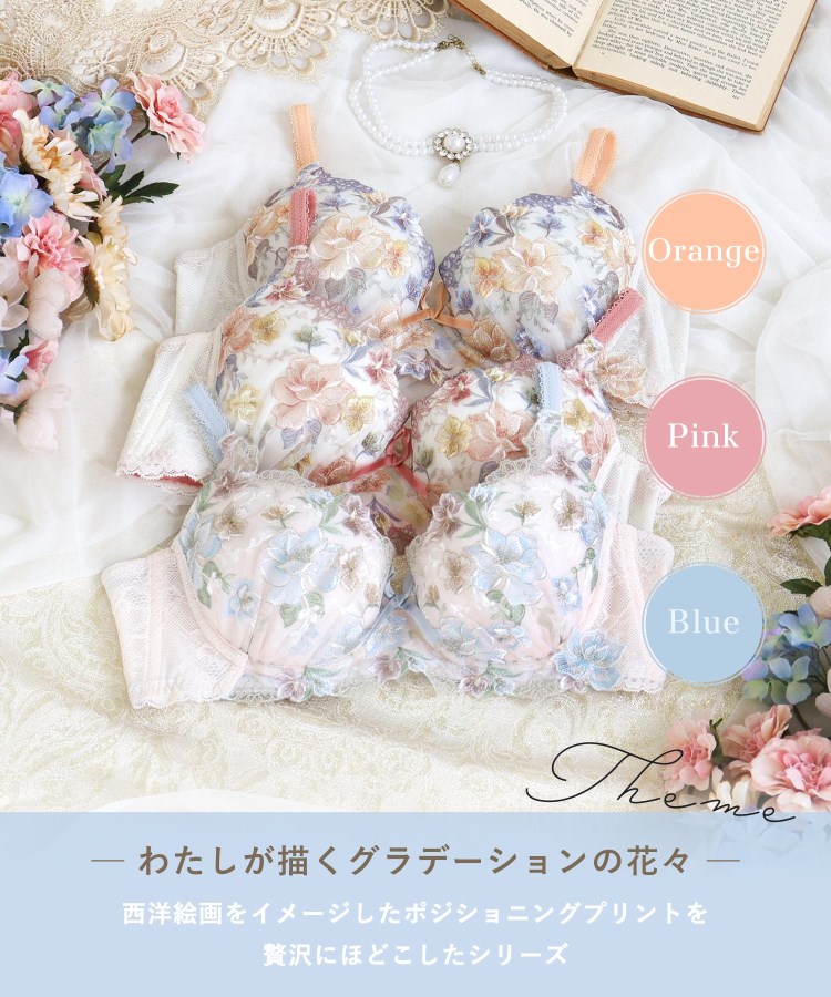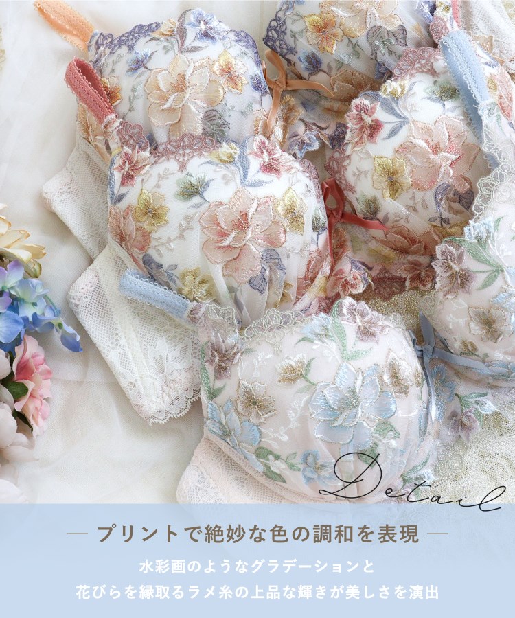 西洋絵画をイメージした、ポジショニングプリントを贅沢にほどこしたシリーズです。全体にあしらわれた花々の刺繍は、水彩画のようなグラデーションが調和することで、華やかながらも繊細な表情に。花びらは細めのラメ糸で縁取り、キラキラと上品な輝きが、ポジショニングプリントを引き立たせる儚い印象に仕上がりました。サイドにはカンバスから浮き出てきたようなシアーアップリケをほどこしています。色展開は新しい季節の訪れを感じる、スモーキーで落ち着きのあるカラーリングに。自分だけのアートを身に着けるような特別感を演出する、大人の女性に送るコレクションです。