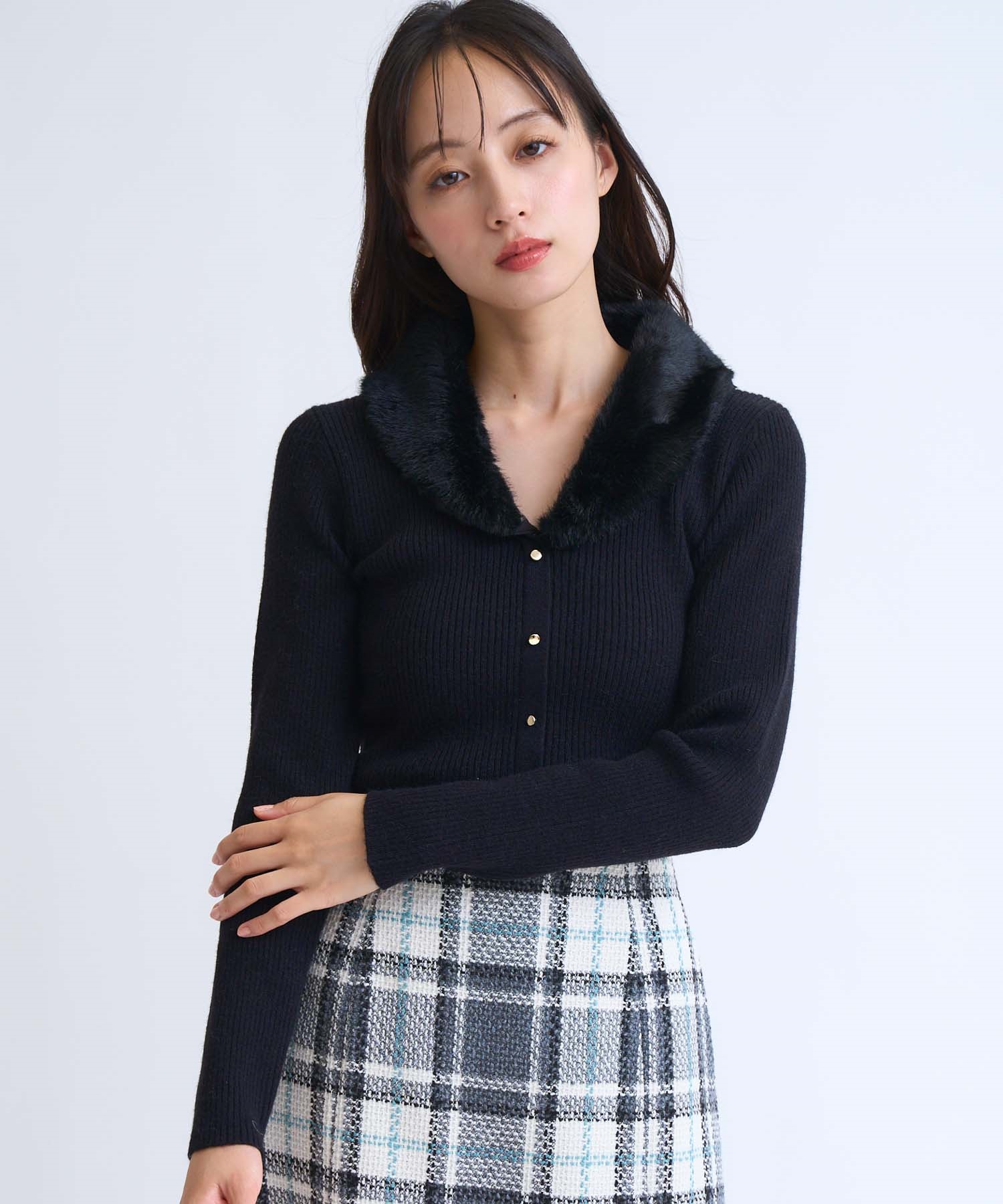 フェイクファーの襟が華やかなアクセントを添えるニットトップス。