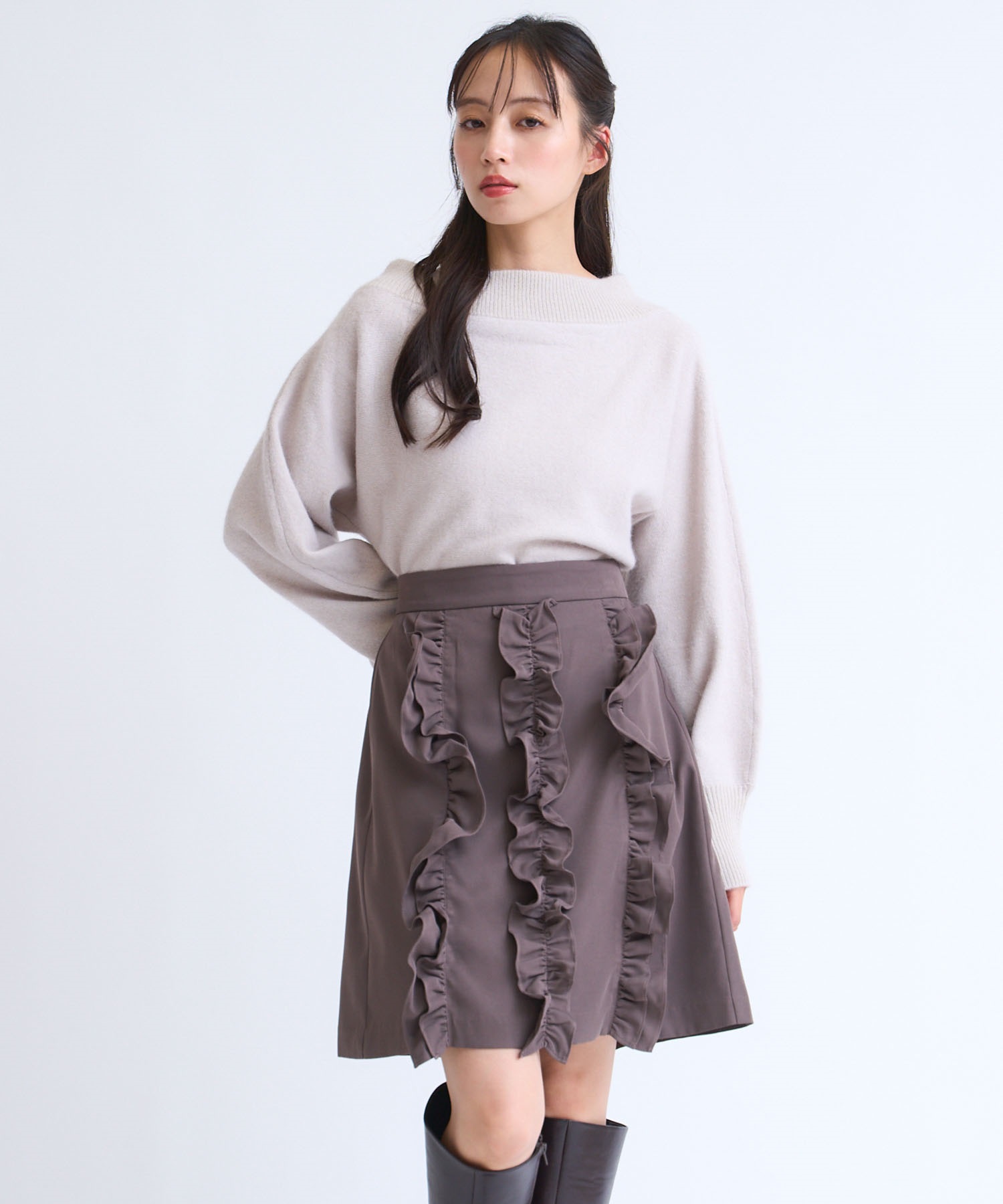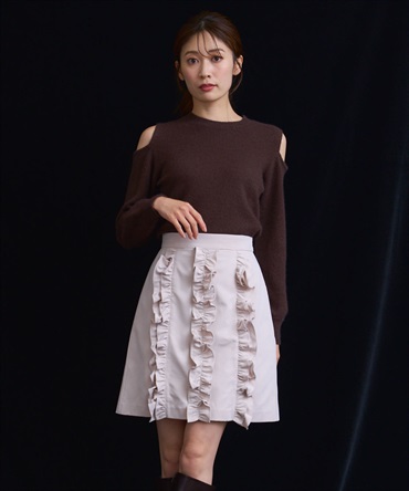 ギャザーフリルを贅沢にあしらった、存在感のあるミニスカート。