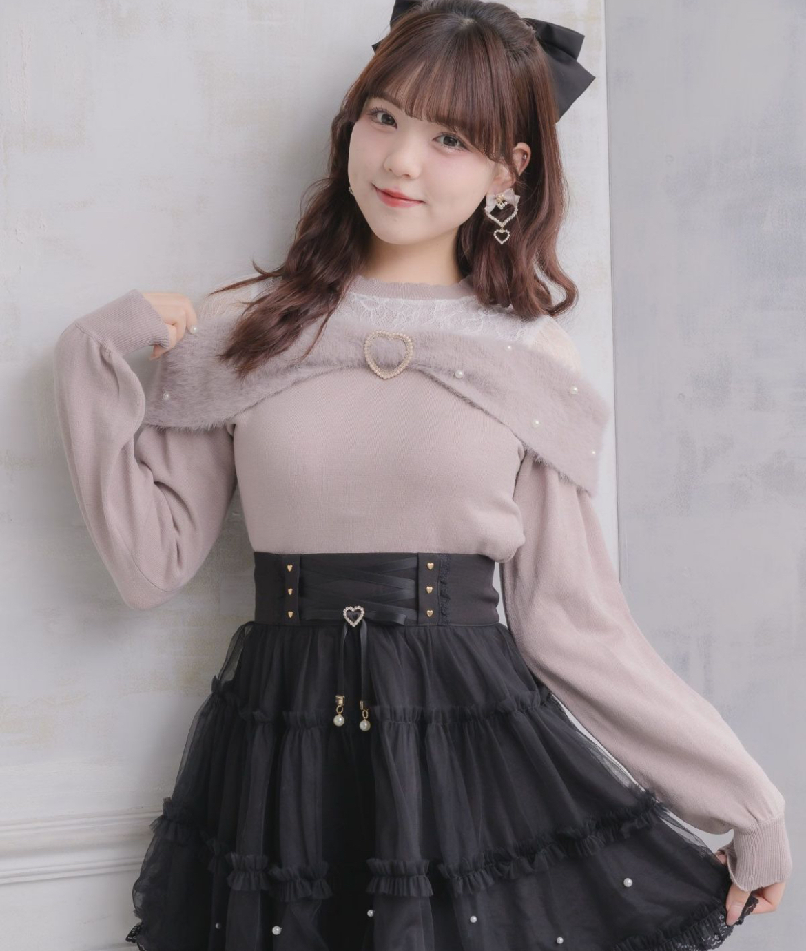 シャギー素材で仕立てた大きなリボンが、コーデの主役に♪リボンの上にはパールが散りばめられており、ROJITAらしい“ときめき”強めなディテールが特別感をプラスしてくれます。デコルテを綺麗に見せるオフショル風デザインで、ほんのり大人かわいく♡アウターの中でも映える、これからの季節に一押しの主役トップスです。
