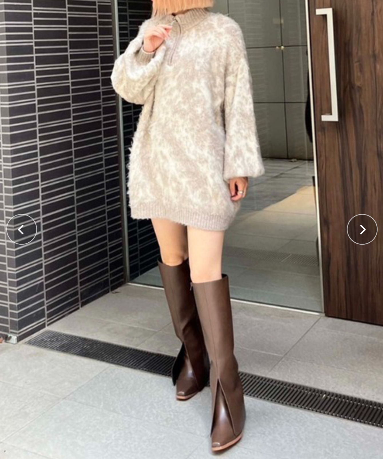 起毛した素材が気持ちよくて癖になるハーフZIPオーバーニット。