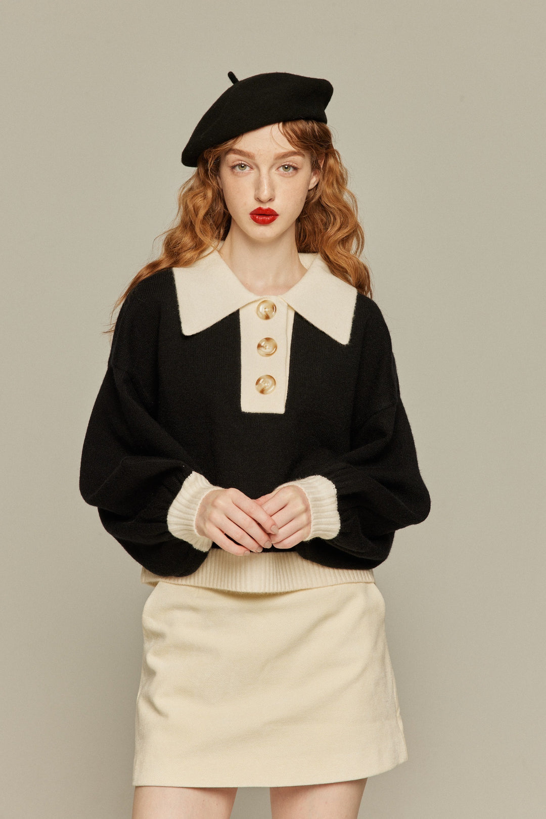 大きな襟とボタンもポイントです📌