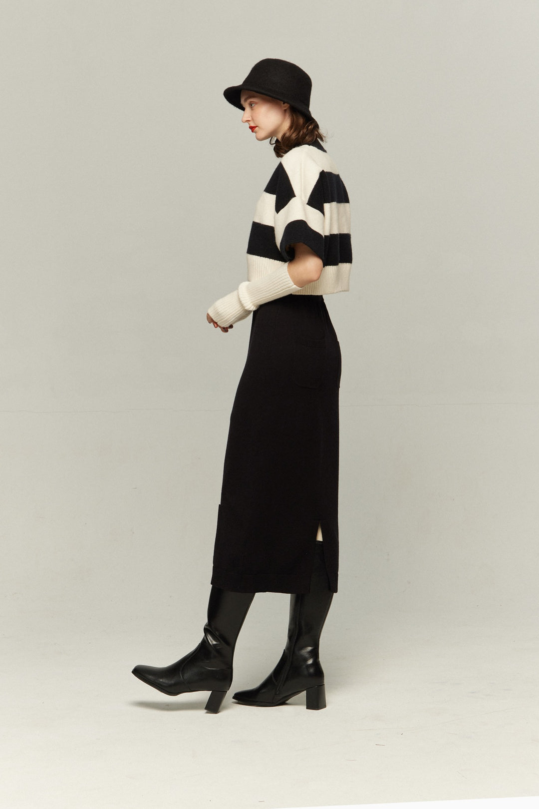 伸縮性のあるウエストにより、ハイウエスト/ローウエストでお好みの丈に調節可能です💓
