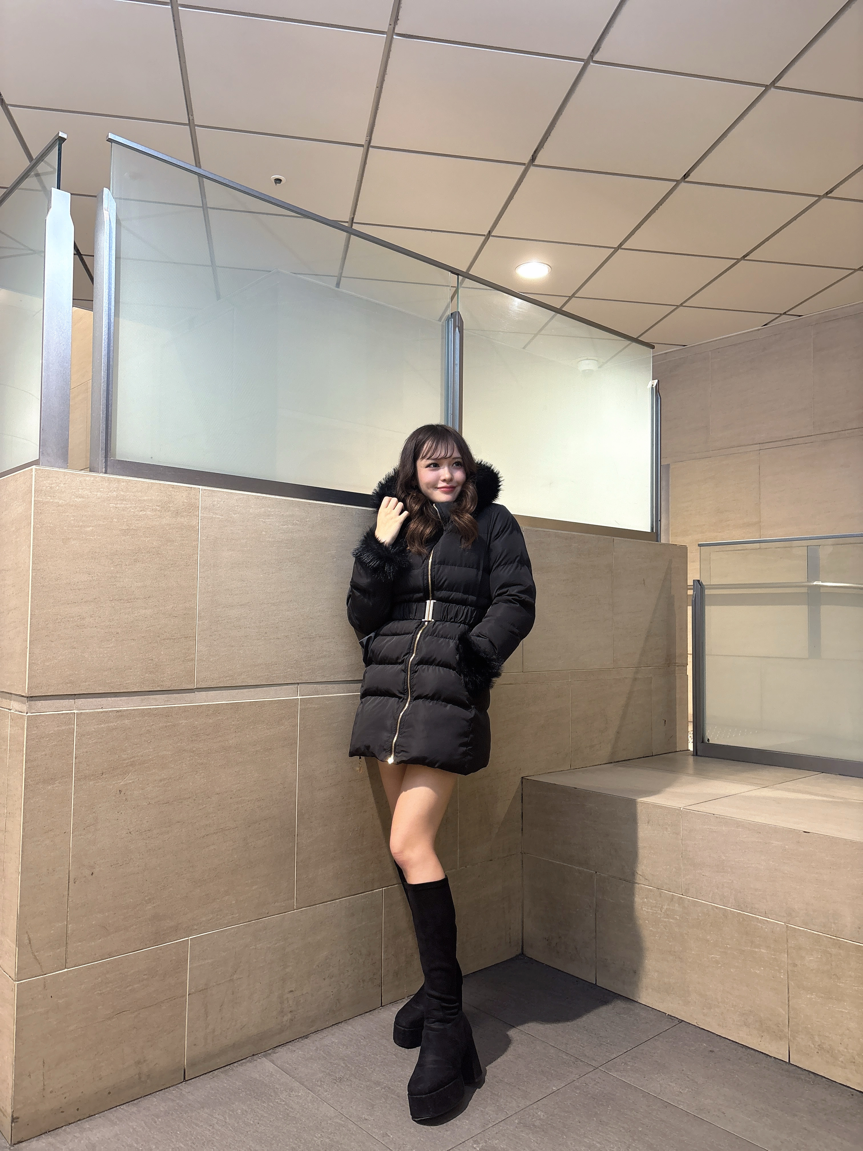 ミニ丈のボトムスを普段着る方はお尻まですっぽり隠れるロング丈のアウターがおすすめです♪冷いベンチに座ってもあったかいです☃️ダウンは毎年大人気で寒くなると在庫が間に合わないのでお早めにお越しください♩♪
