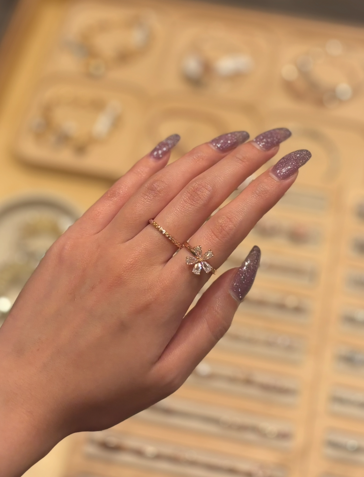 光が当たるたびにきらきら輝いて、指先を一瞬で華やかに見せてくれるキュービックリング💍✨