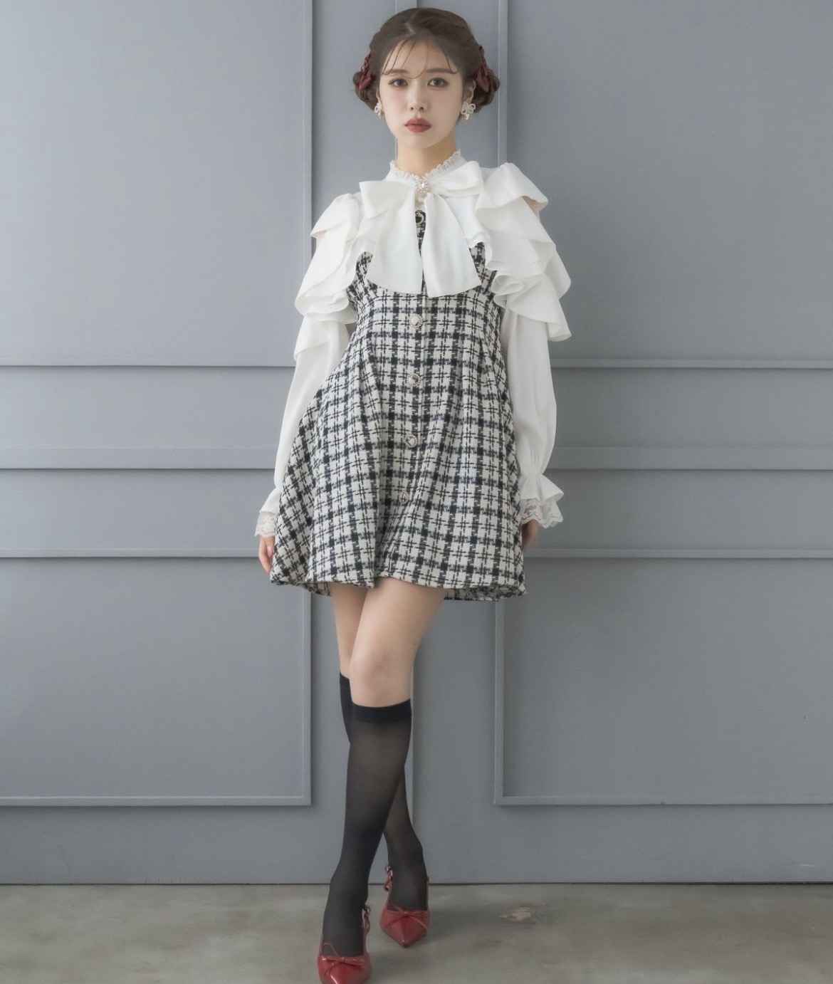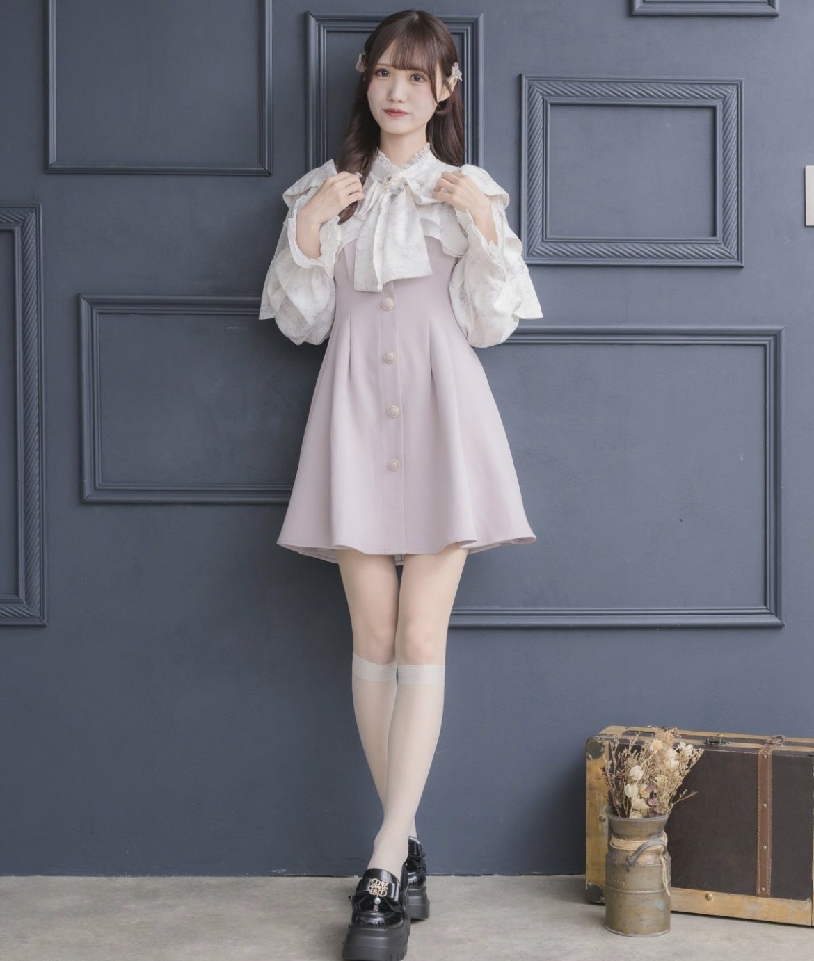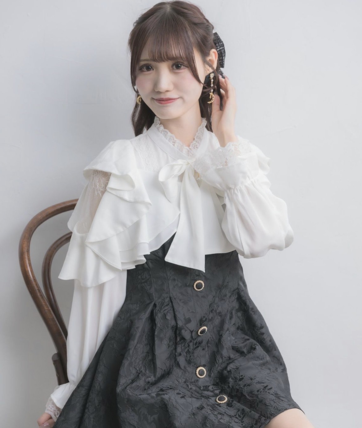 たっぷりのドレープが花びらを重ねたように見える上品可愛いデザイン♪花柄プリント・チェック柄・ジャガードのバリエーションで、クラシカル&エレガントな雰囲気を纏います。レースが大人っぽい雰囲気を醸し出し、メリハリのバランスも抜群なアイテム。