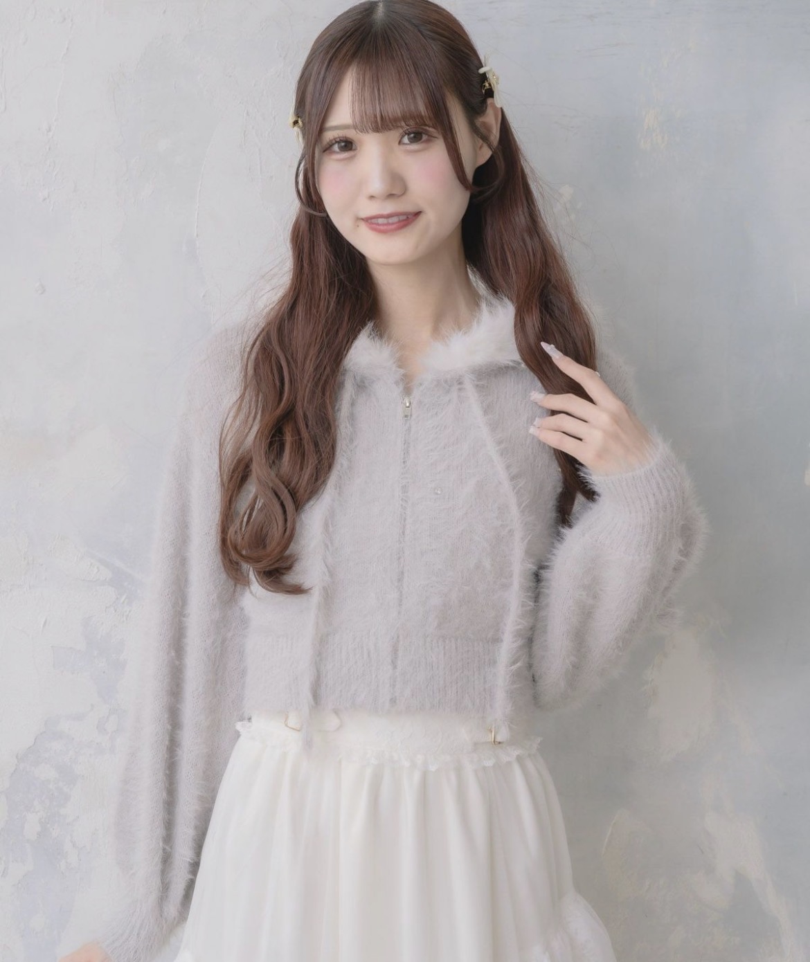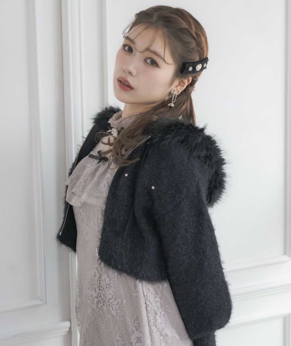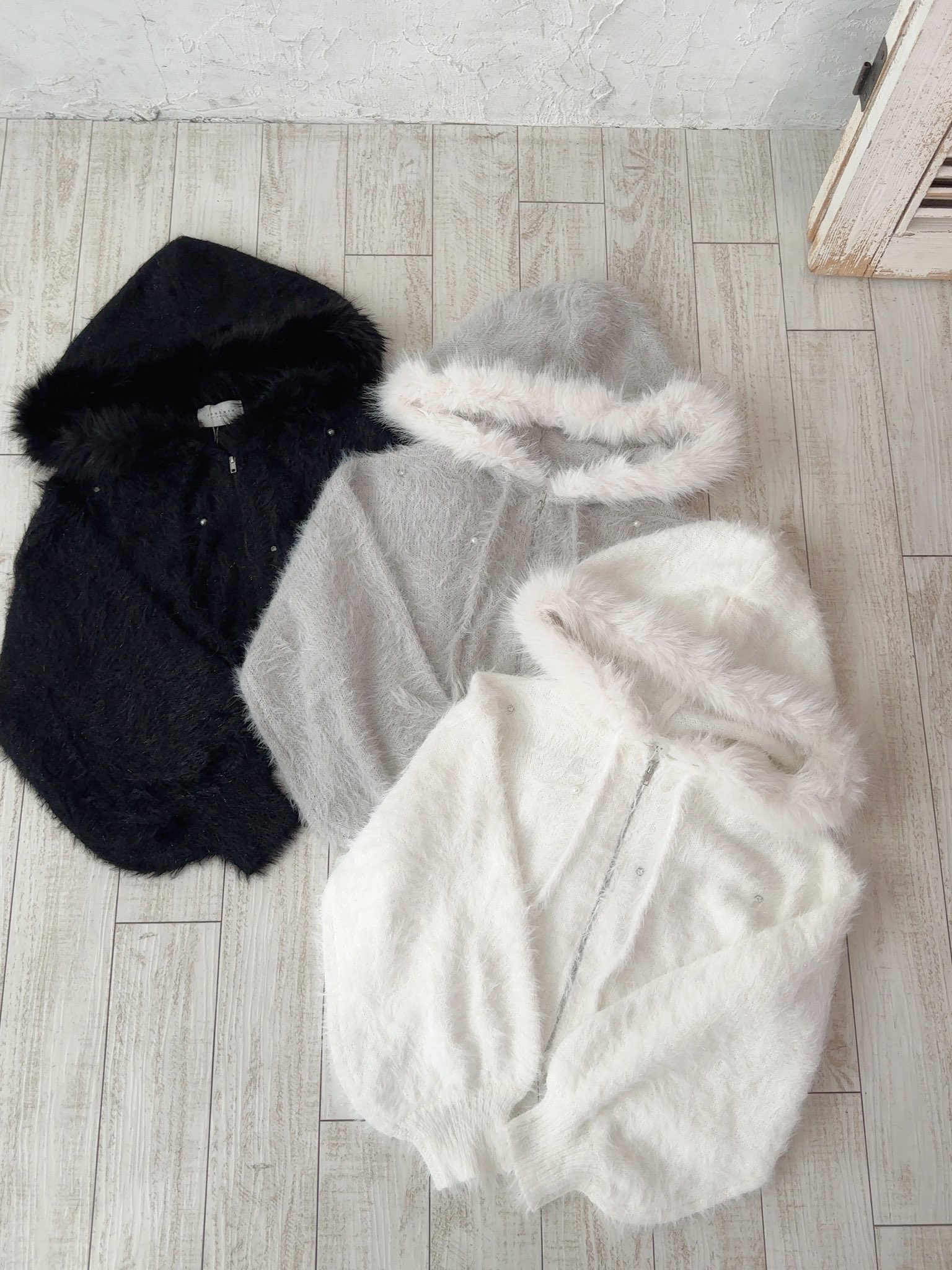 ふわっと輝く秋冬の主役♡柔らかな手ざわりとリラックス感のあるシルエットで、着るだけで大人可愛い印象に◎パールとラインストーン散りばめ、ほんの少し特別な気分をプラスしてくれます。トップス風に1枚でも、ゆるっと羽織ってラフに着こなすのが今っぽい♪