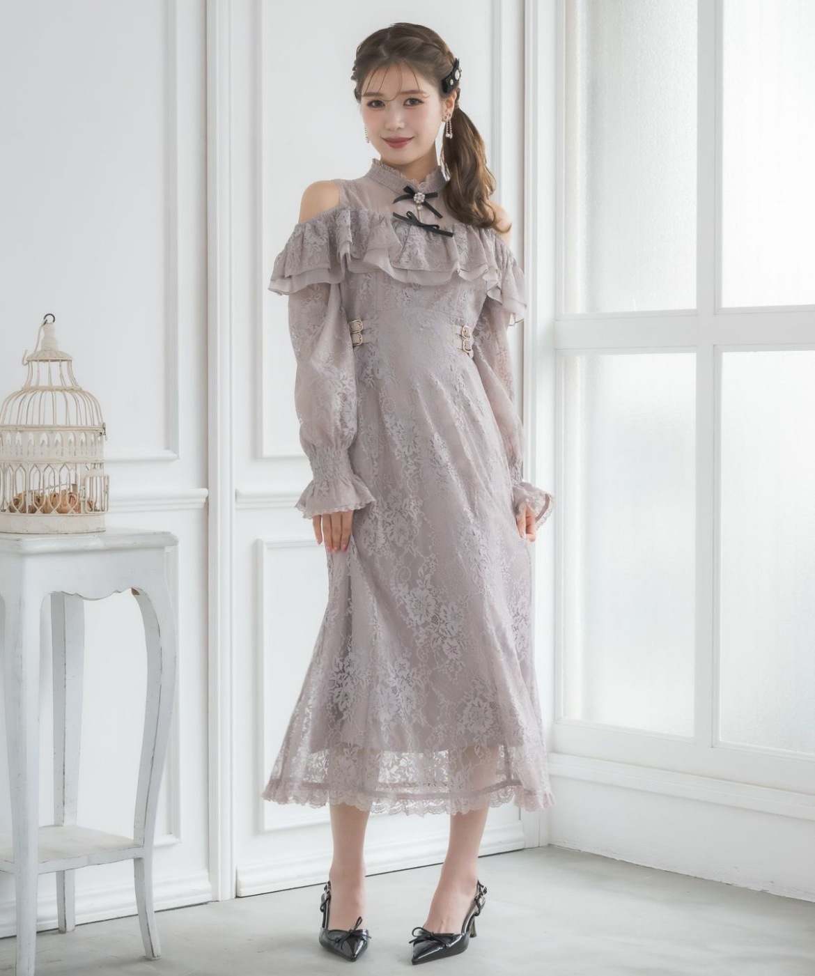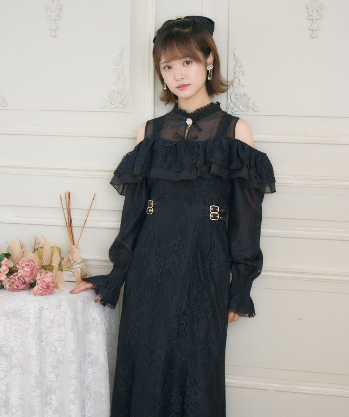 肩開きがヘルシーな大人っぽさを演出♪オフショルに施したフリルが肩周りを華奢に見せてくれ、女性らしさUPすること間違いなし◎繊細なレース使いで上品可愛く、歩くたびに揺れるエアリーな素材も裏地付きで安心です。