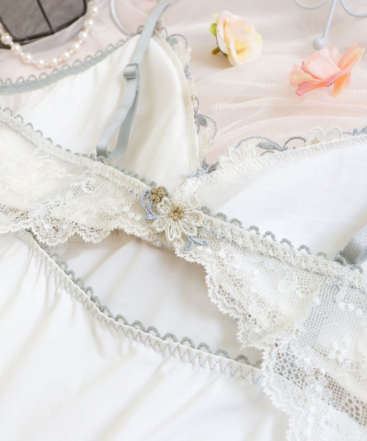 サイネリアのお花をモチーフにした可憐なシリーズです。全体に散りばめたサイネリアのお花は、1つ1つのラメの入れ方に変化をつけることで、お花畑にいるような華やかな雰囲気に。クルンと丸みのある茎や小花達もふんだんにあしらい、フェミニンな印象に仕上がりました。身生地にはふんだんにストレッチレースをほどこし、縦ラインを強調してスタイルアップ。バックスタイルはV字のカッティングに小さなペアのアップリケを添えて、可愛らしさを後押ししながらも、上品な肌見せスタイルをお楽しみいただけます。やわらかい色をベースに、絶妙なカラーリングに心ときめくIvory・Mustard・Pinkの3色で展開。サイネリアの花言葉「喜び」「希望」のように、身に着けるだけでそっと笑顔が咲くようなリサマリコレクションです。