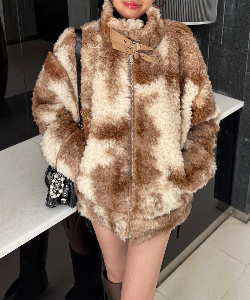 ふんわりパーマ風の毛足が特徴的なMIXカラーのファーコート。