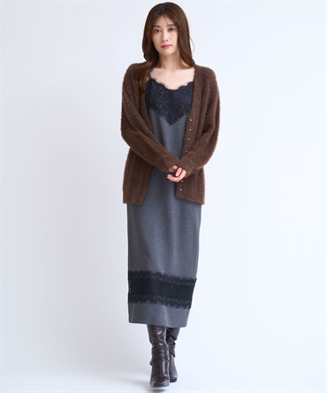 ミドル丈のカーディガンを羽織るスタイリングがおすすめです。