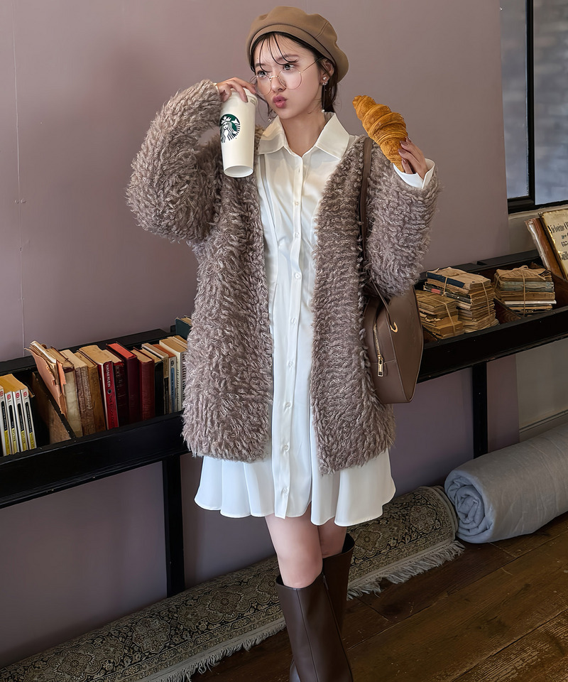 ふわもこ感がたまらない、ざっくりカーディガン。