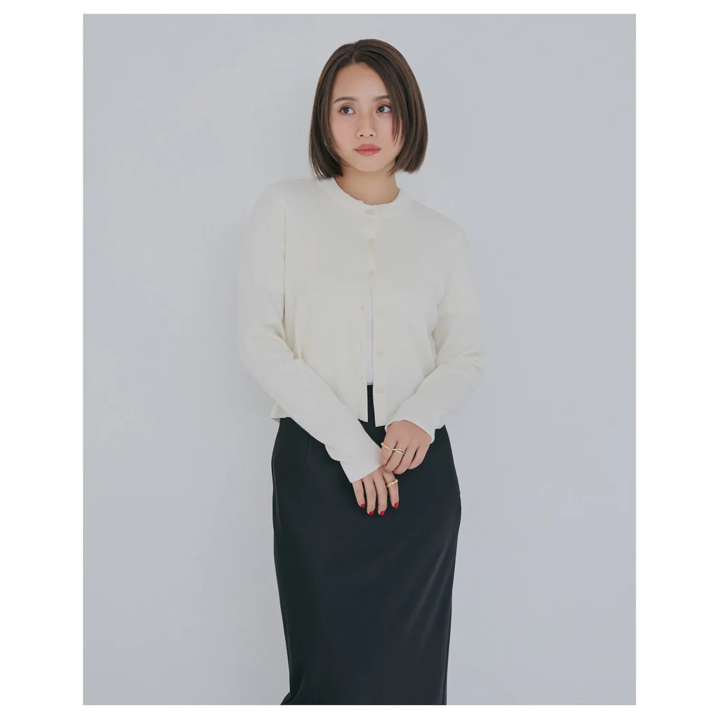 Tシャツの上からコンパクトなカーディガンとして羽織ればカジュアルに。ボタンをすべて留めればきちんと感のあるトップスとしても着られます。少し開けてインナーをチラ見せすれば今年らしいレイヤードスタイルが完成。