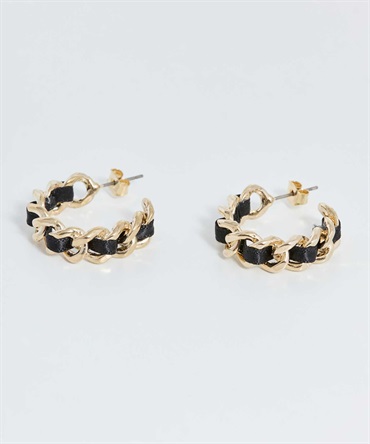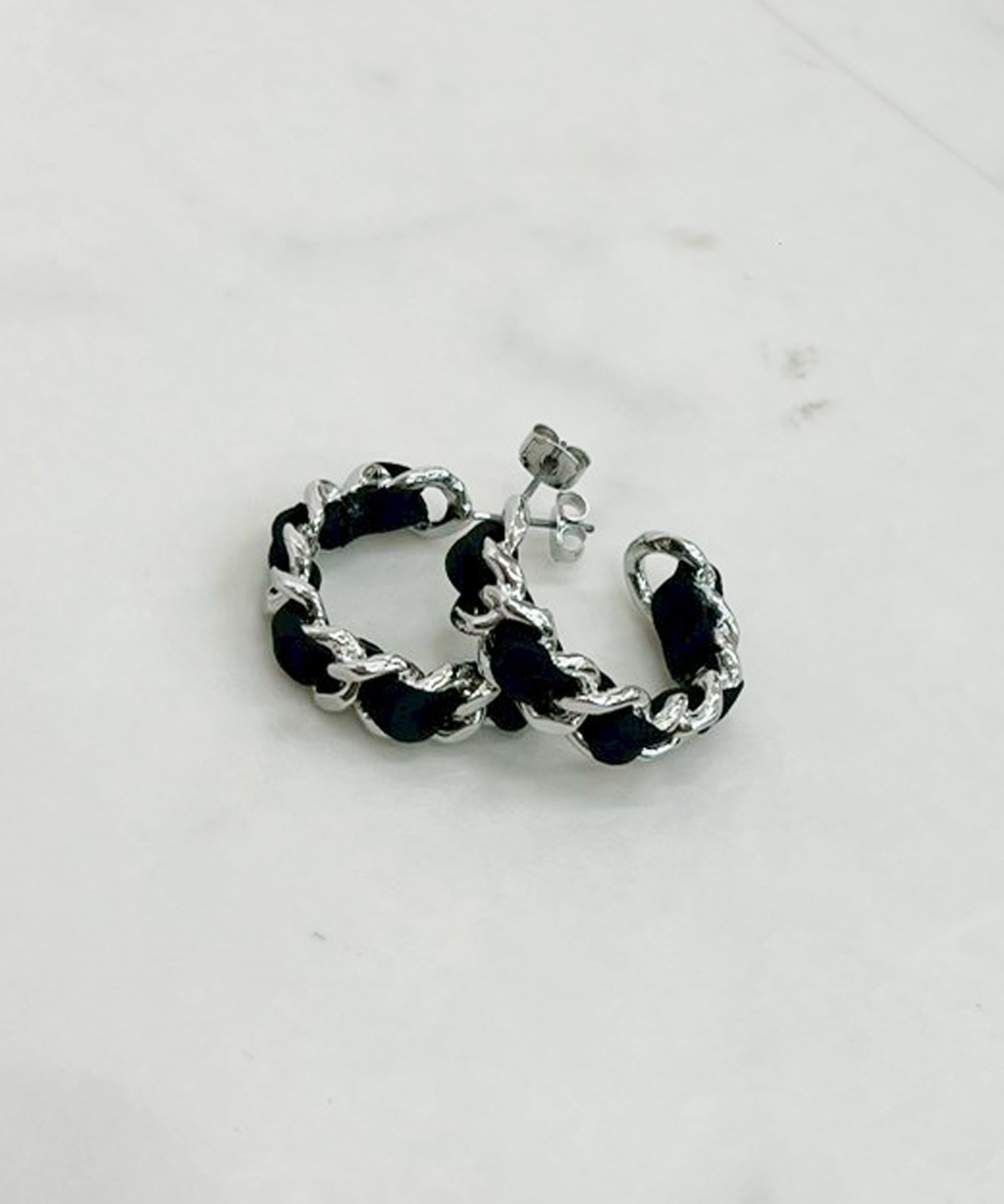シンプルかつ洗練された印象のリボンチェーンフープピアス。