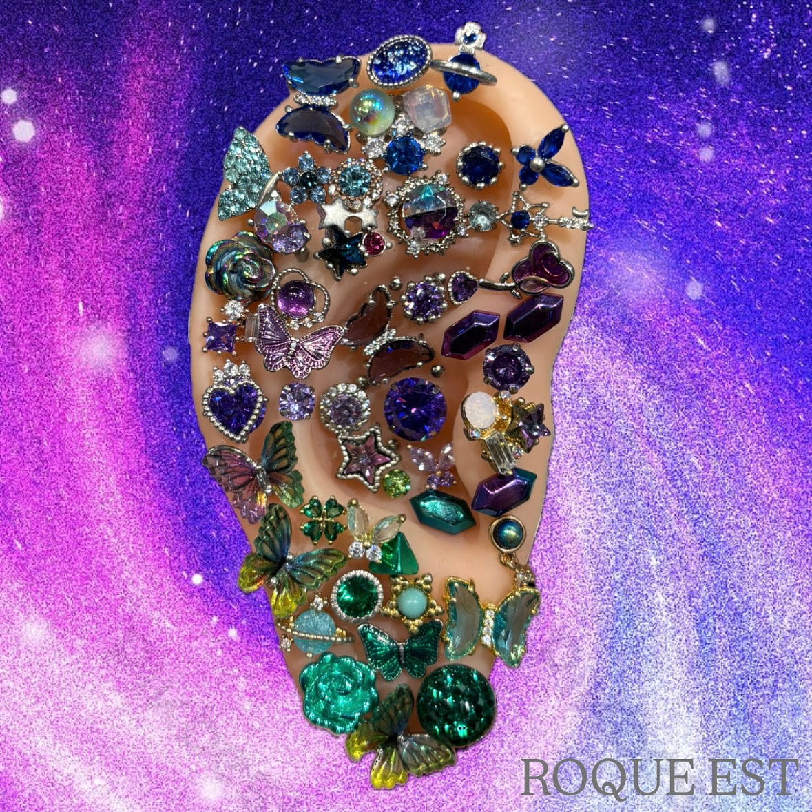 こんにちは ロキEST店です!今日のコーデはグラデーションコーデです!色ごとに沢山ピアスをつけるとグラデーションを演出できます🎶また、ピアス自体グラデーションになっているものもあり、1つ付けるだけでも華やかな耳に仕上がります✨