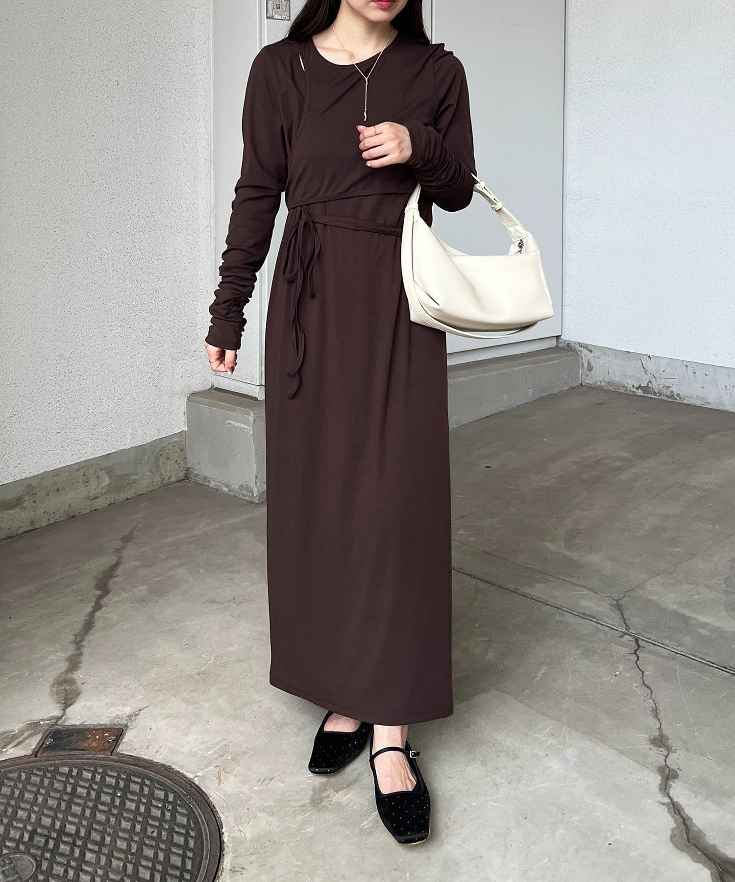 ウエストのリボンがくびれを作りスタイルアップが叶います。