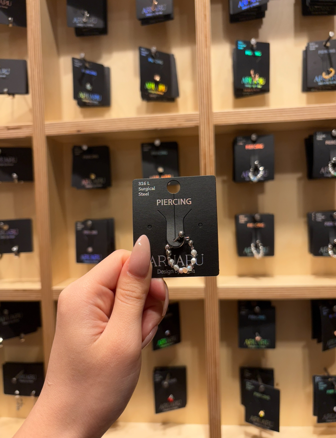 シンプルながらも個性を引き立ててくれるデザインで、耳だけでなくへそや軟骨など、さまざまな部位に合わせてお使いいただけます。