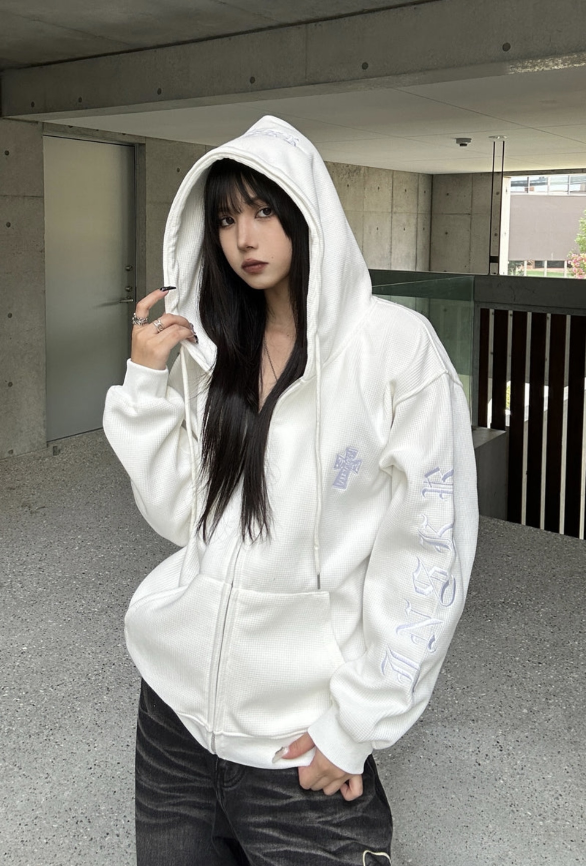 デニムやカーゴパンツと合わせてとことんストリートに、スカートと合わせて甘辛ミックスにと、様々な着こなしが楽しめる万能パーカー。