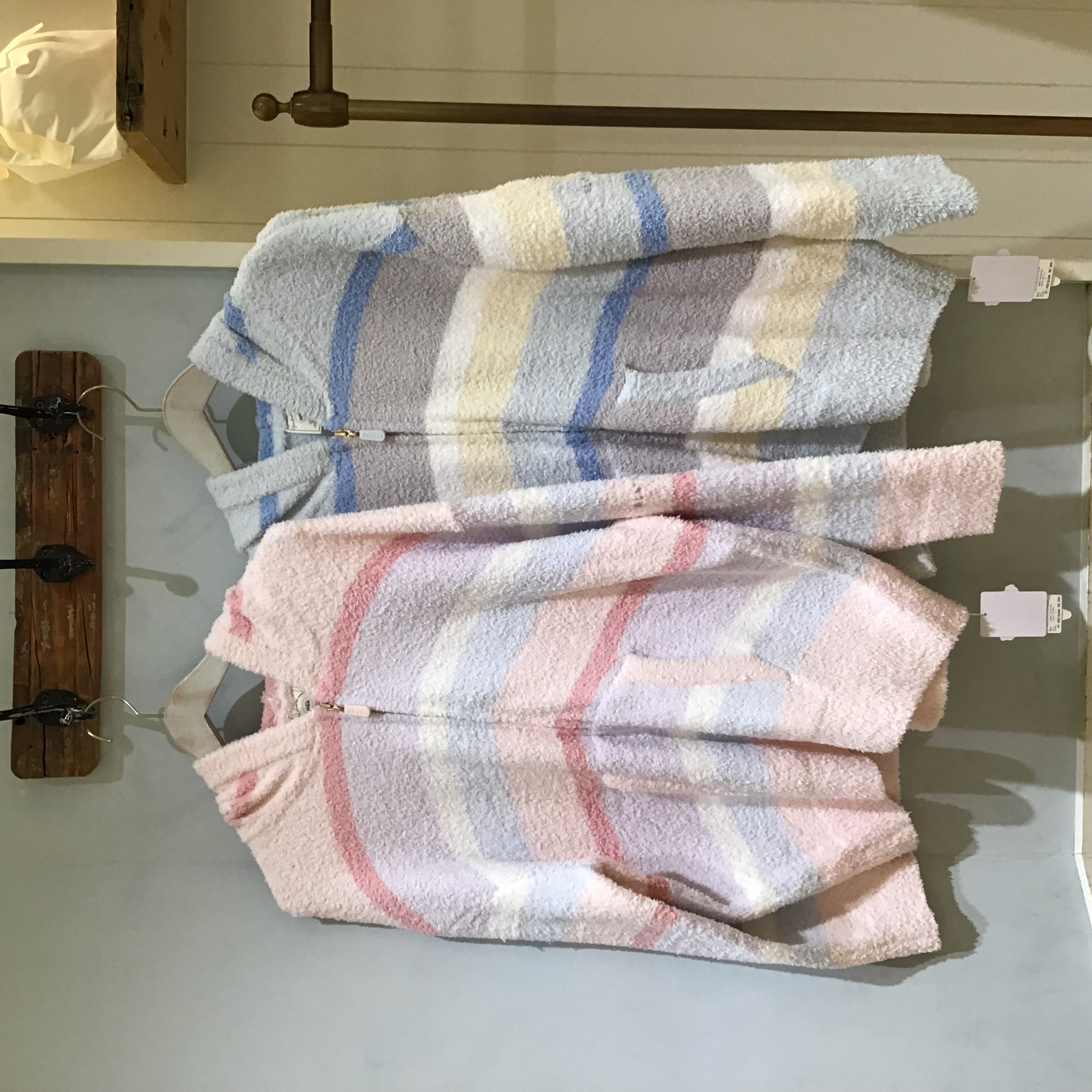 キャンディのようなカラフルなボーダー柄が幸せ気分を演出する、親子でお楽しみいただける’ベビモコ’シリーズです🍼