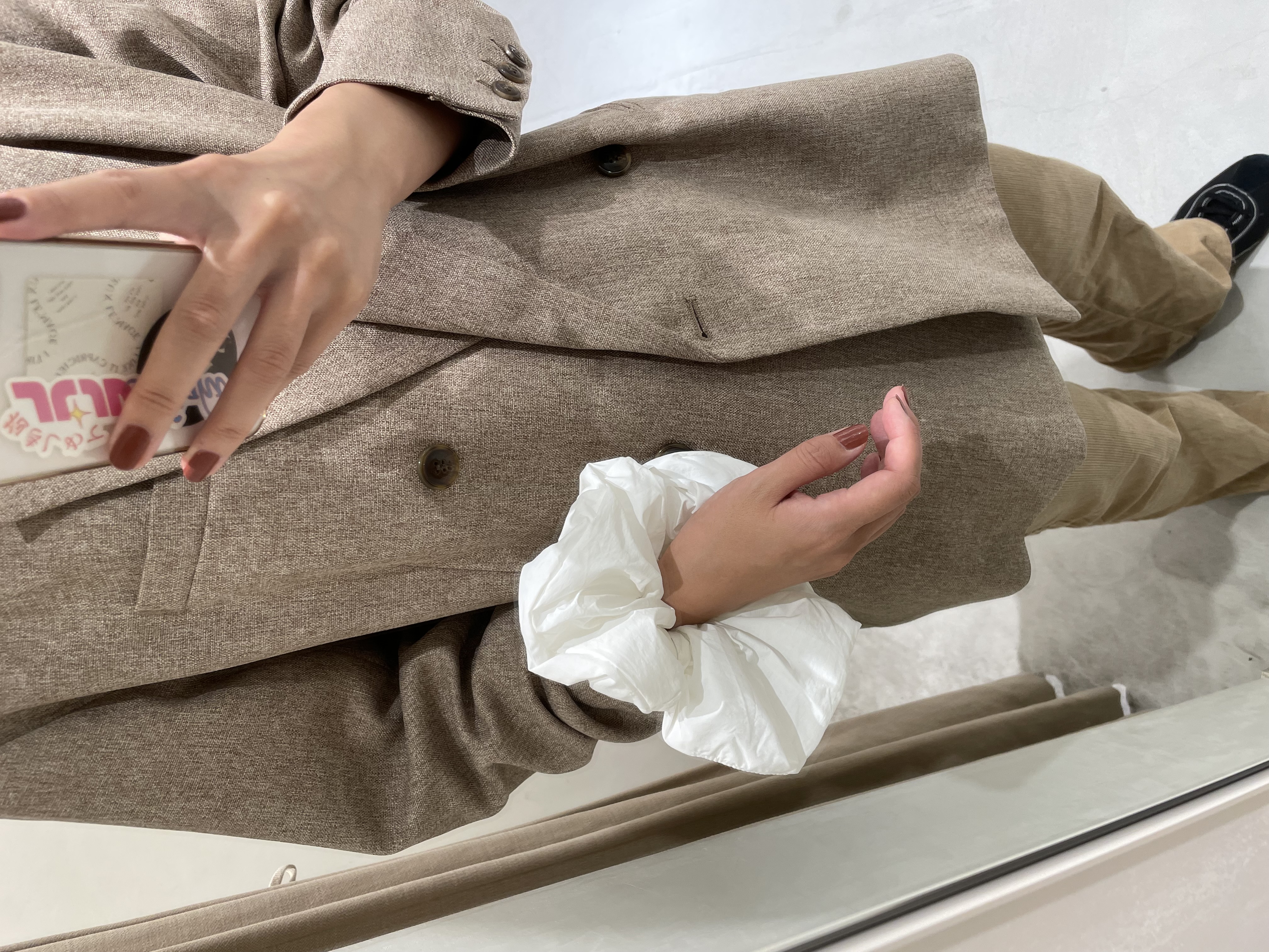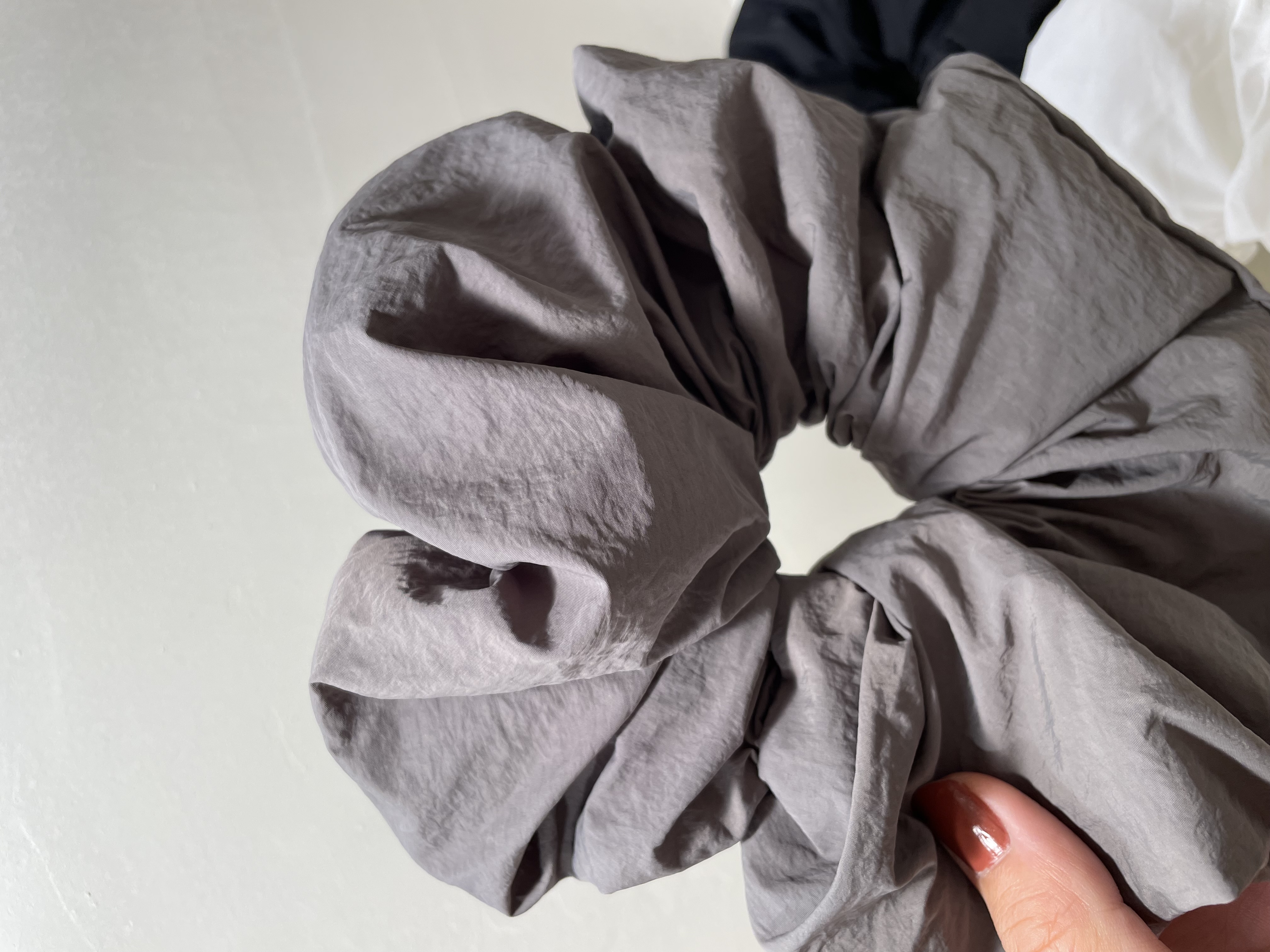 ボリューム感がかわいいシュシュが入荷♪ シャカシャカ生地でカジュアルなシーンでも 合わせやすいです♪