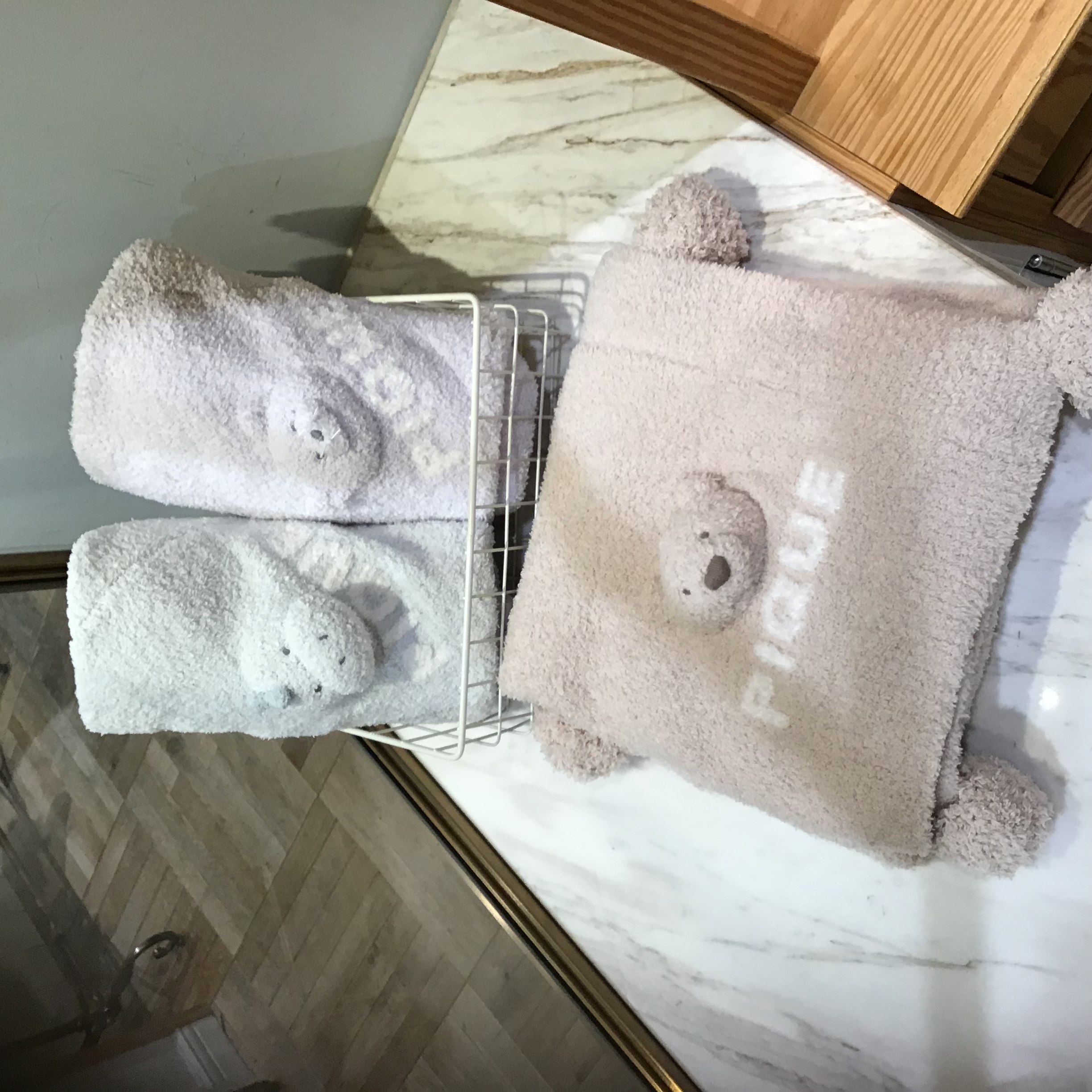 【立体的な顔が愛らしいパウダー素材のBABYベアブランケット】 4,620円(税込)