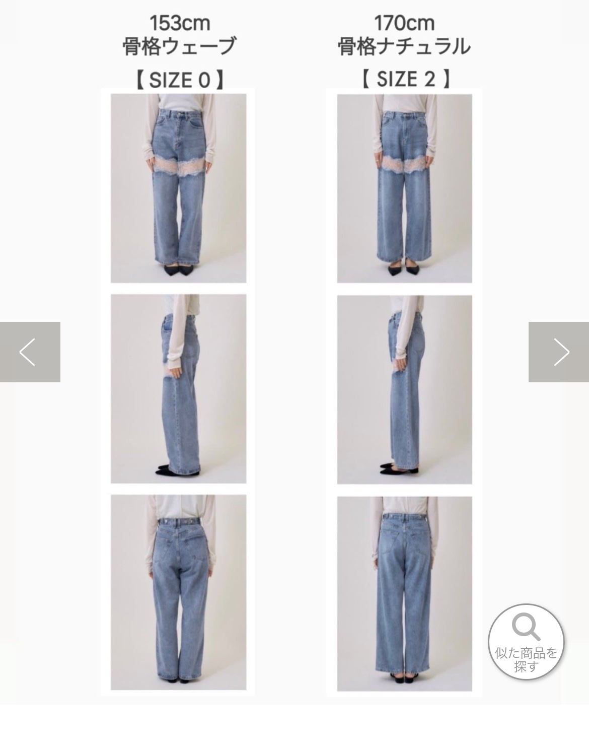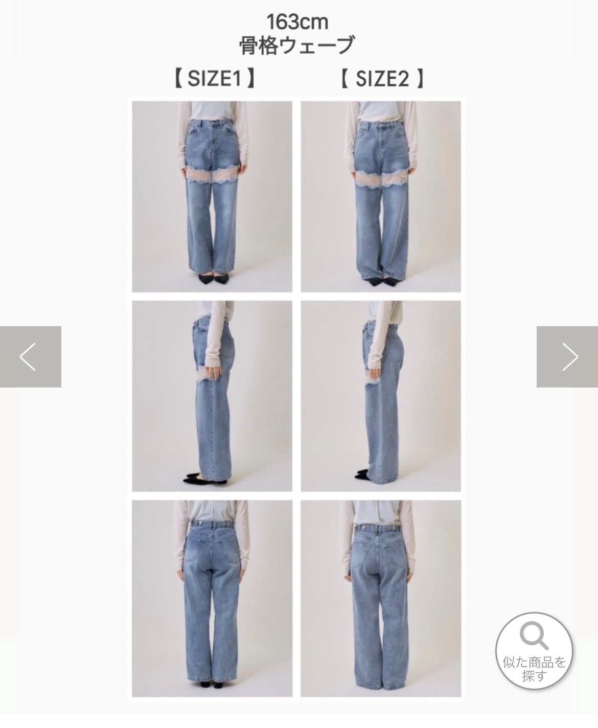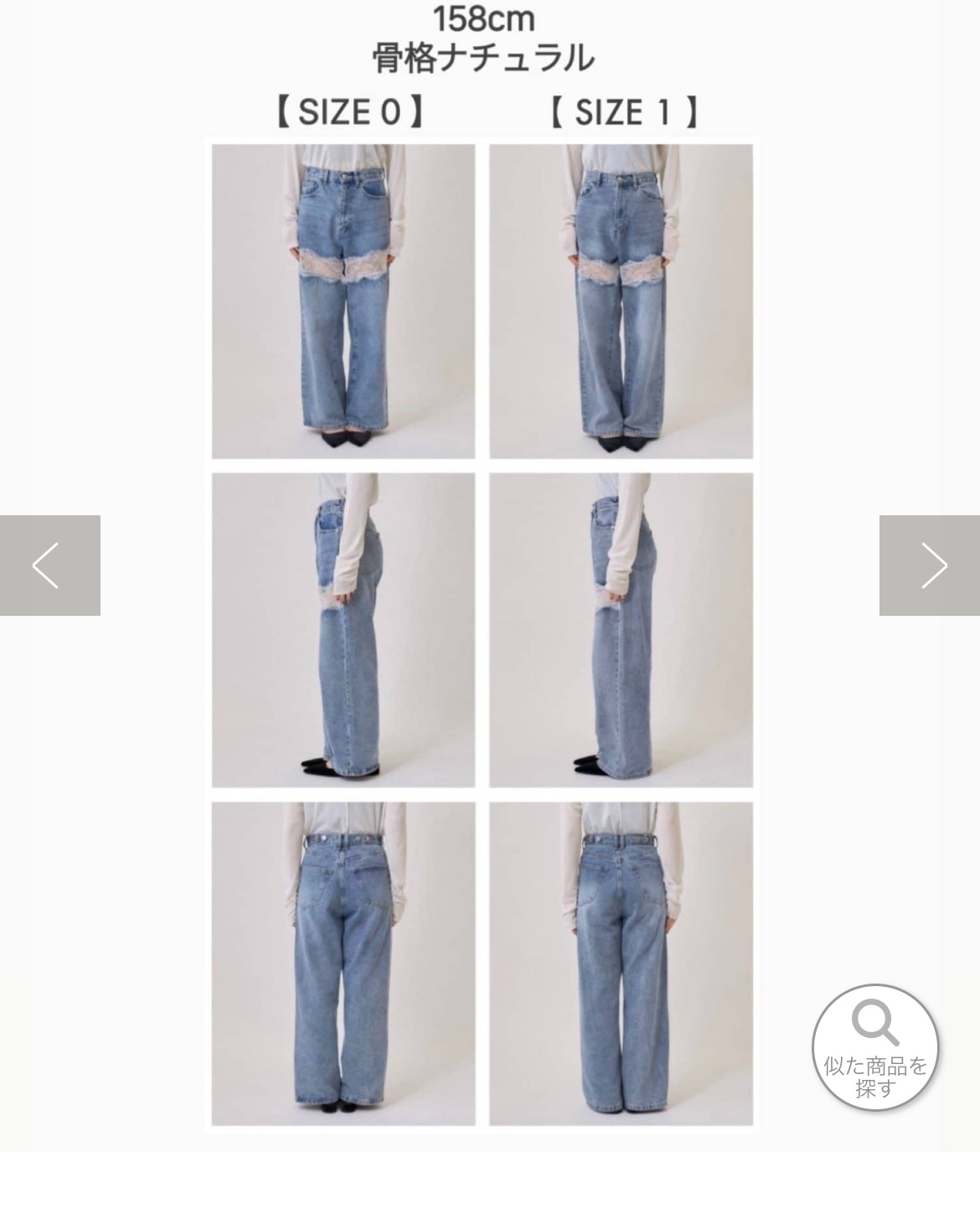 ・切替部分のレースが程よい肌魅せ叶うお洒落デニム♡デニム×レースで、カジュアルさとレースのフェミニンさが甘すぎない印象を与えてくれるアイテムです!
