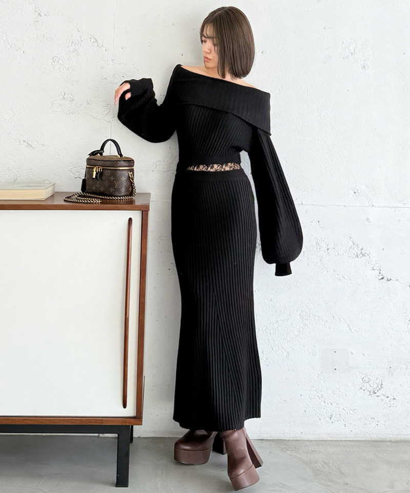“抜け感”と“女っぽさ”を両立するオフショルマーメイドワンピ は、ゆるっとしたリラクシーな着心地と、色っぽさが魅力の1着。