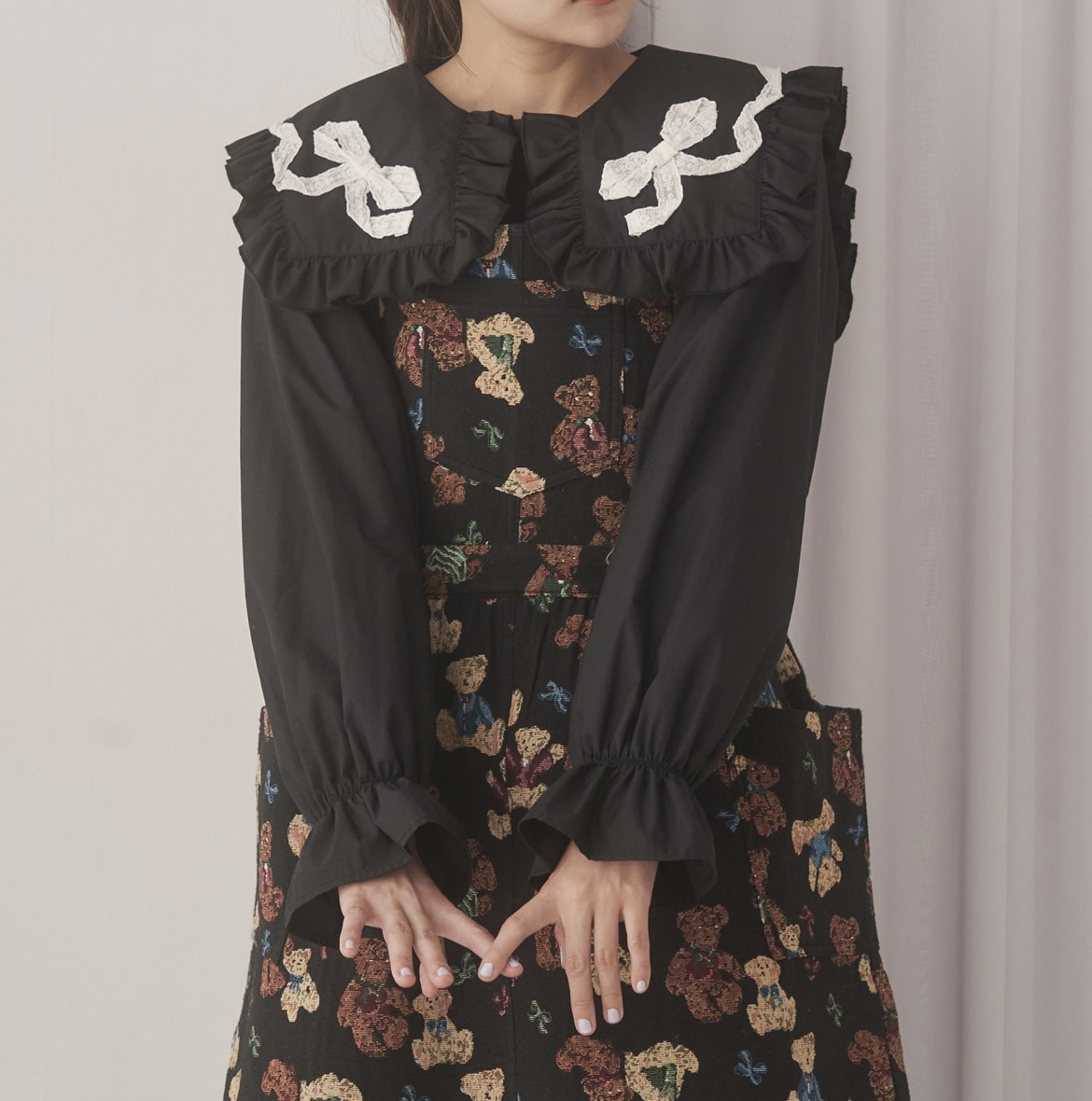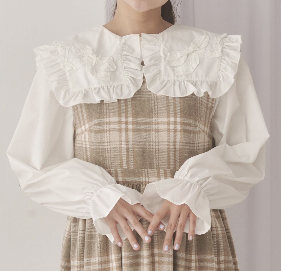 カーディガンやワンピースの下に合わせて、襟をちらっと見せるのもおすすめ。