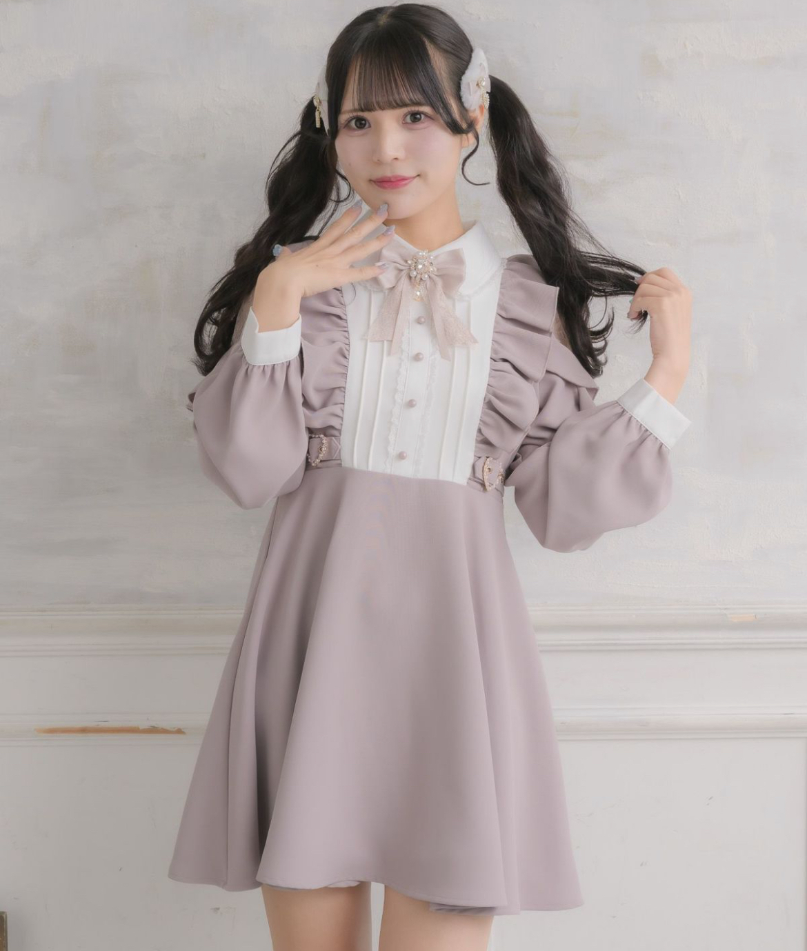 メイドライクなヨーク切り替えを取り入れたドーリーワンピース。地雷っぽくフリルディテールでほどよい甘さをプラス♡サイドにはハートバックルのベルトをあしらい、ウエストをキュッとマークしてスタイルアップ効果も◎可愛らしさの中にちょっぴりスパイスを効かせた、主役級の一着です。